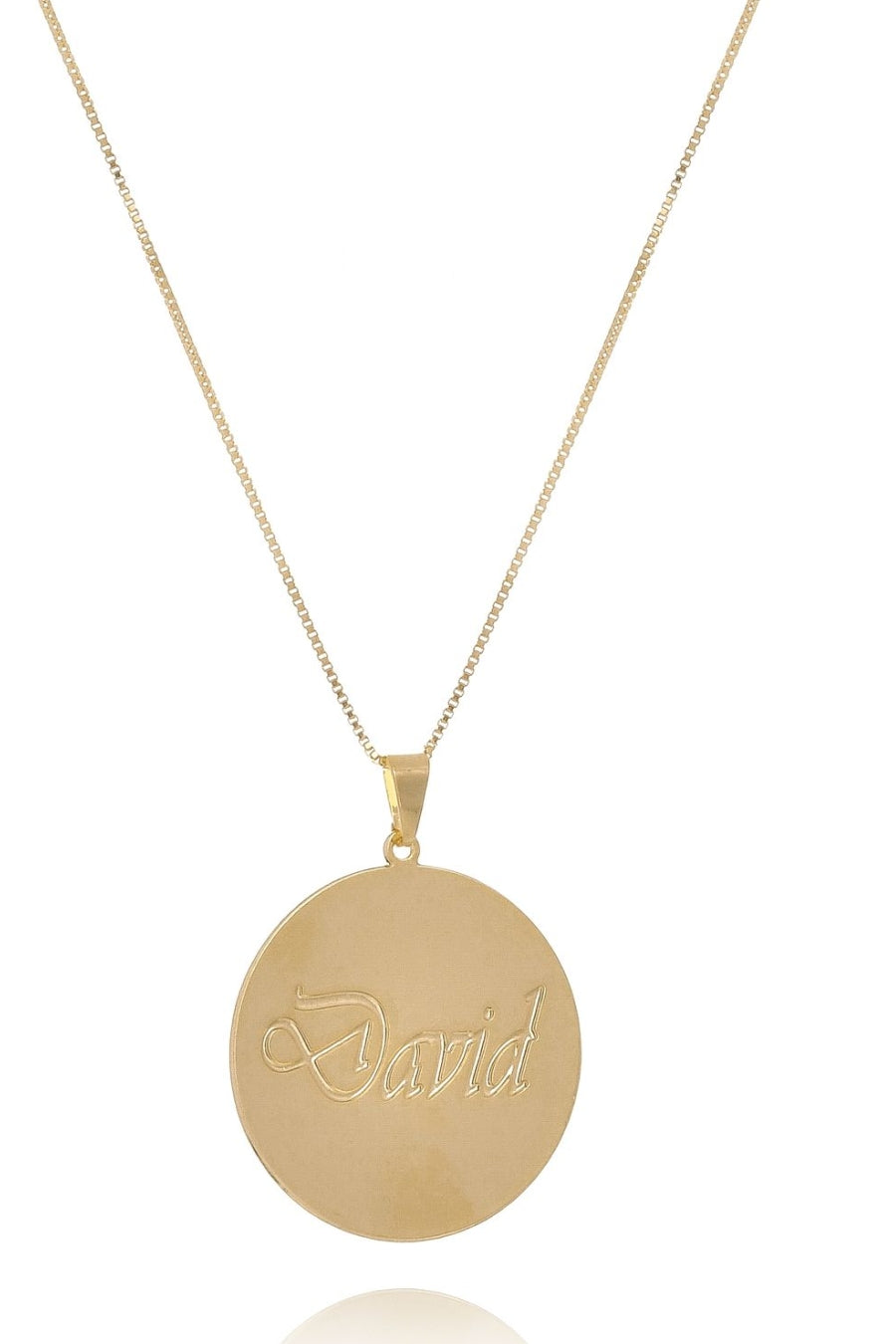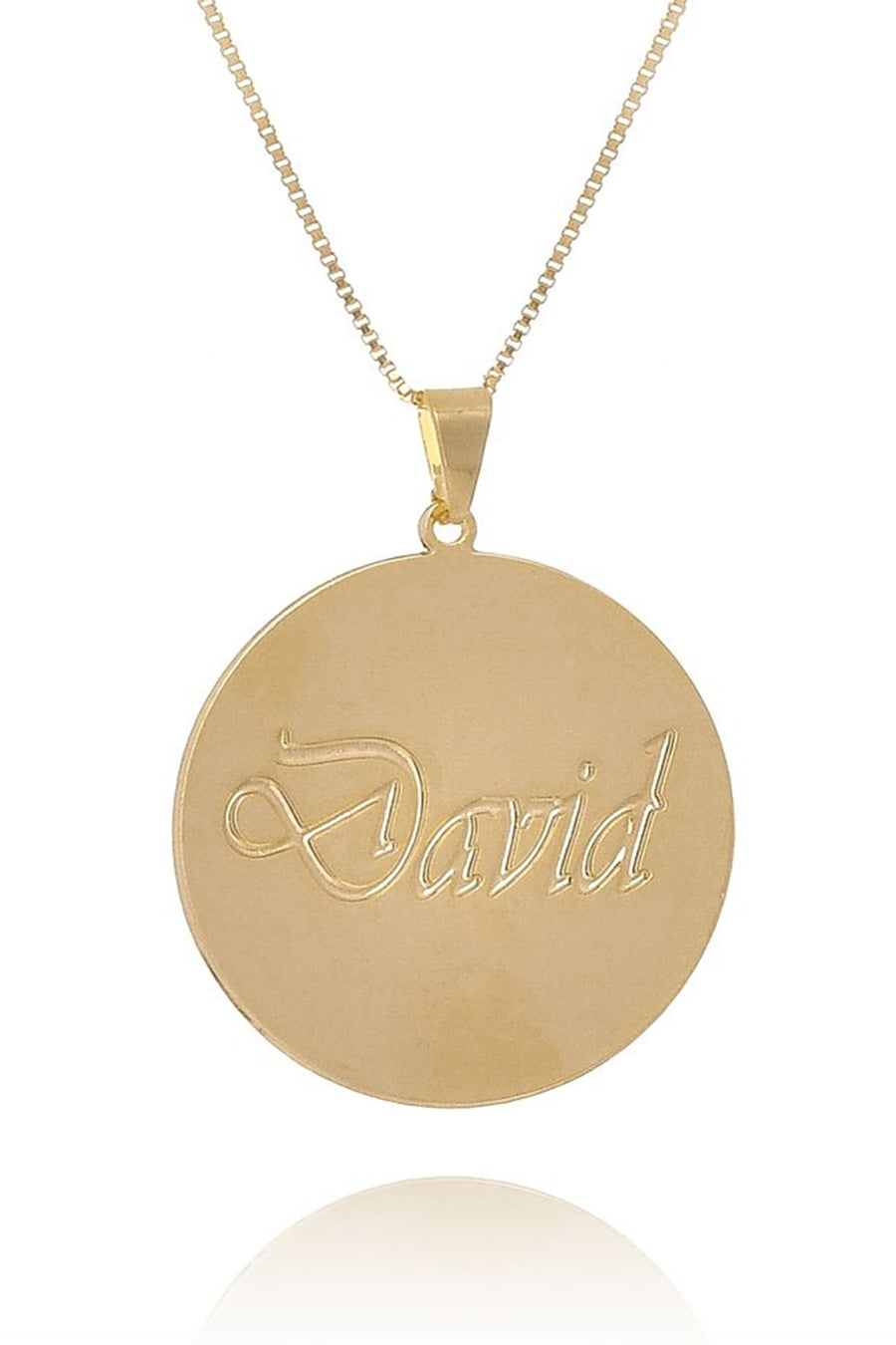 Um lindo modelo de colar personalizado em uma chapa redonda com o nome escrito, é puro charme essa peça.