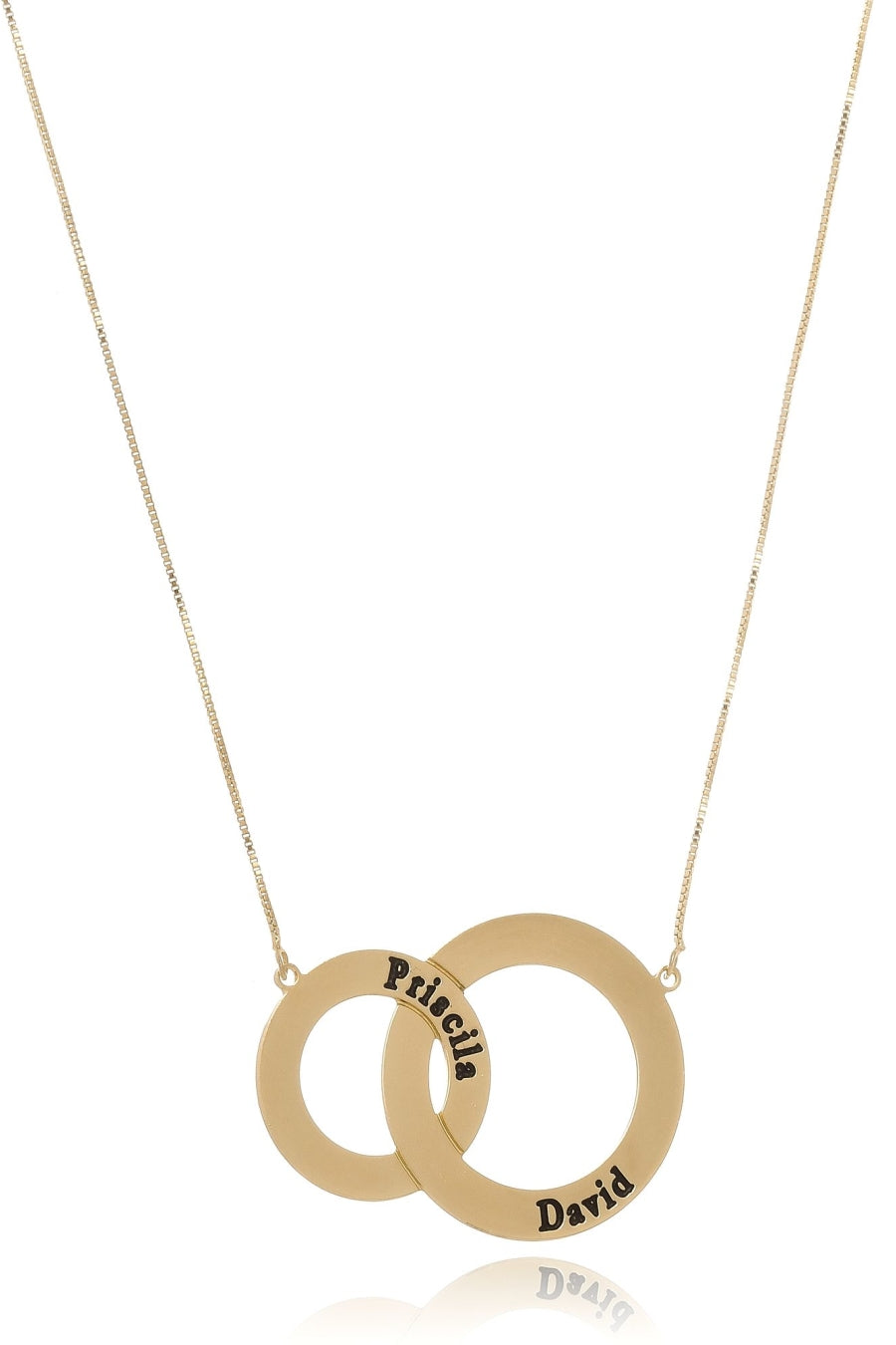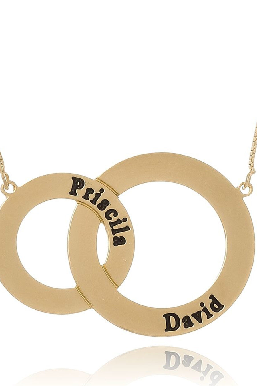 Um lindo modelo de colar personalizado de círculos entrelaçados que levam nomes, um verdadeiro encanto de colar
