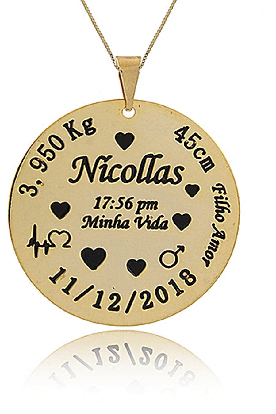 Feito em uma chapa redonda, ele possibilita que você personalize com todos os dados importantes do nascimento do seu filho.