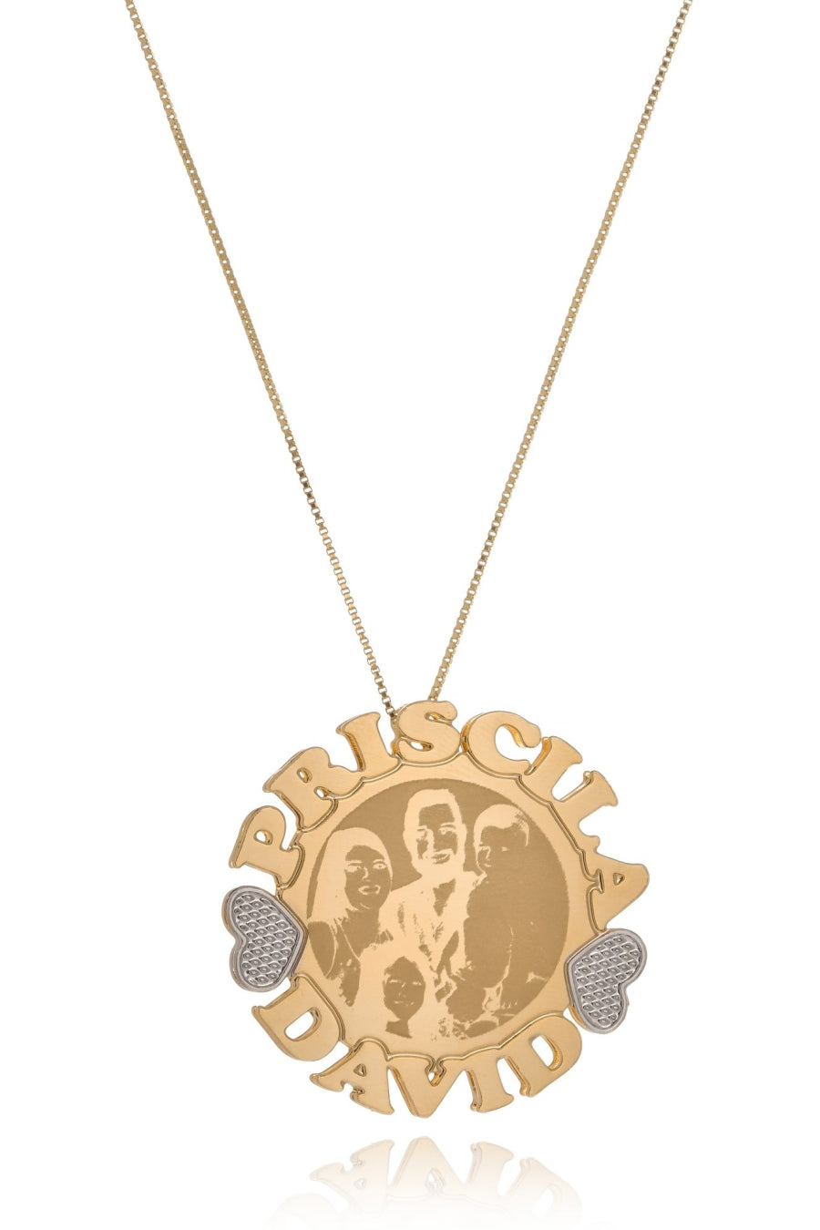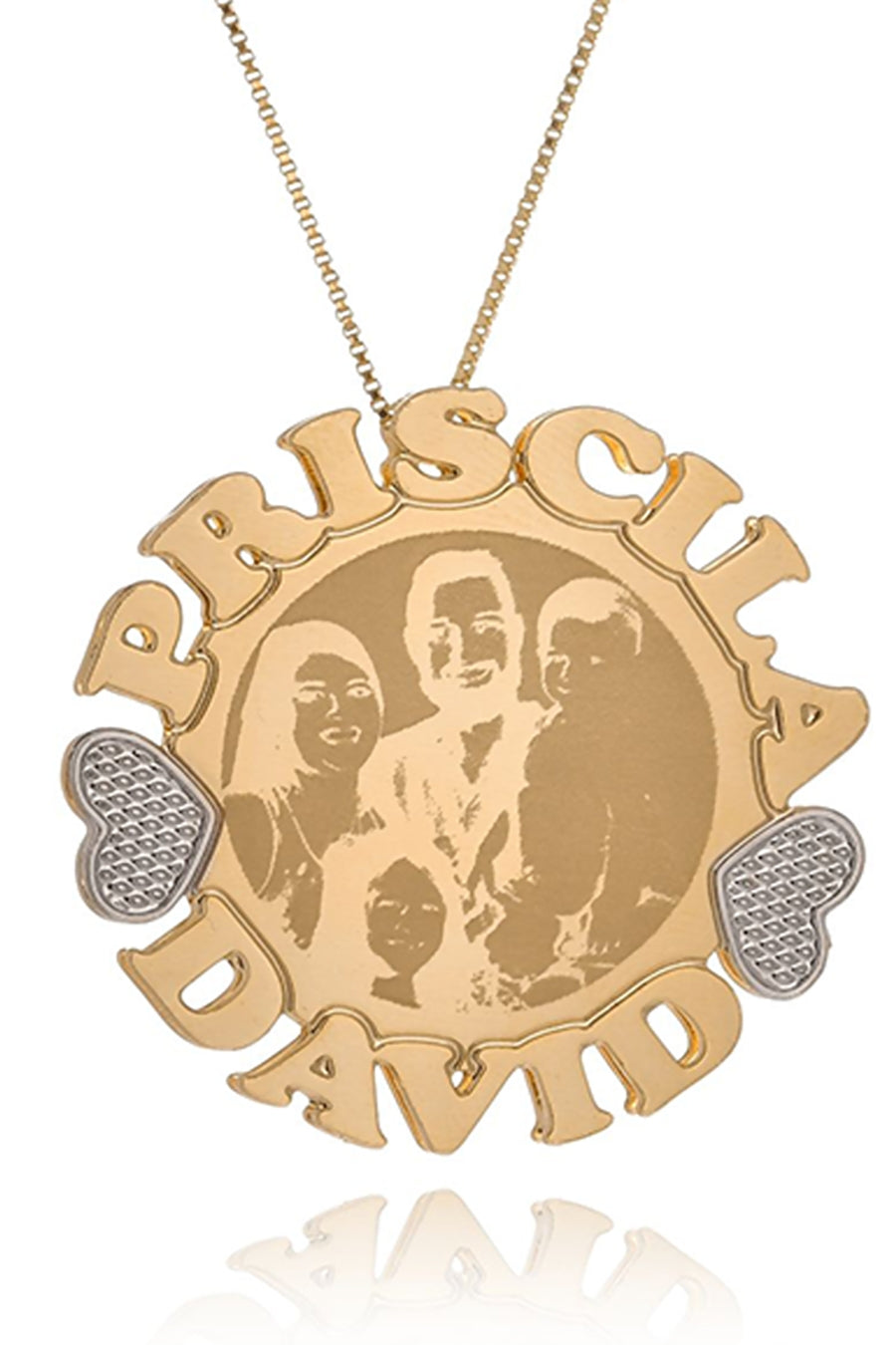 Um lindo modelo de colar personalizado mandala com nomes e uma foto da família, com certeza um verdadeiro charme e encanto.