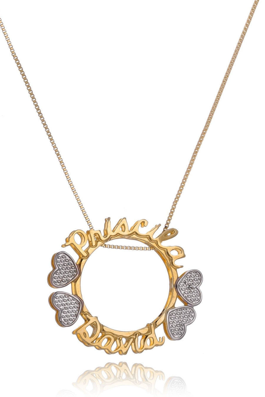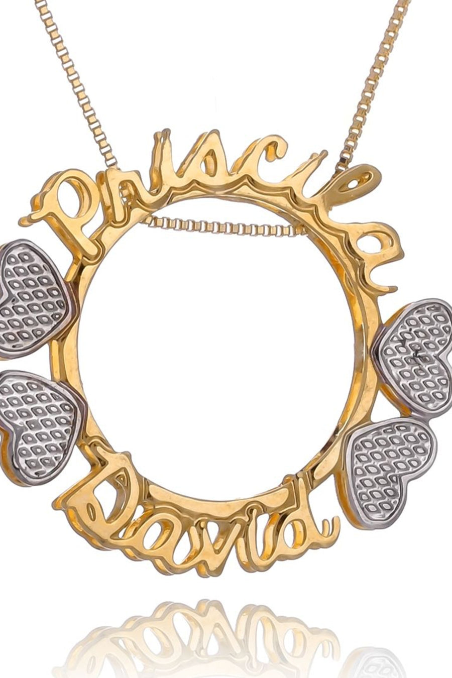Um lindo modelo de colar personalizado mandala com nomes gravados e corações em ródio, com certeza um verdadeiro charme e encanto.