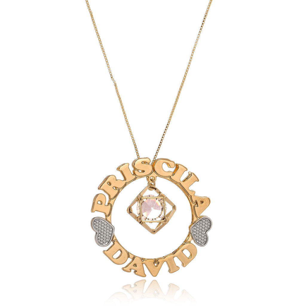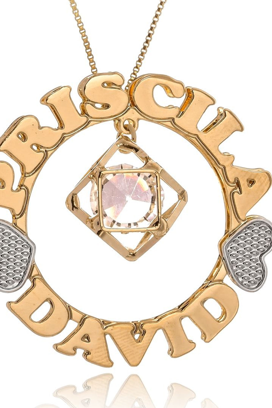 Um lindo modelo de colar personalizado mandala com nomes e um pingente em zircônia, com certeza um verdadeiro charme e encanto.