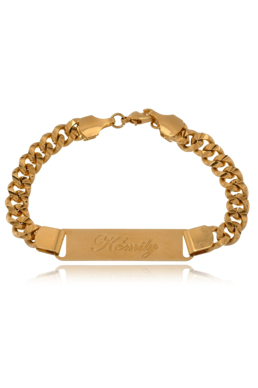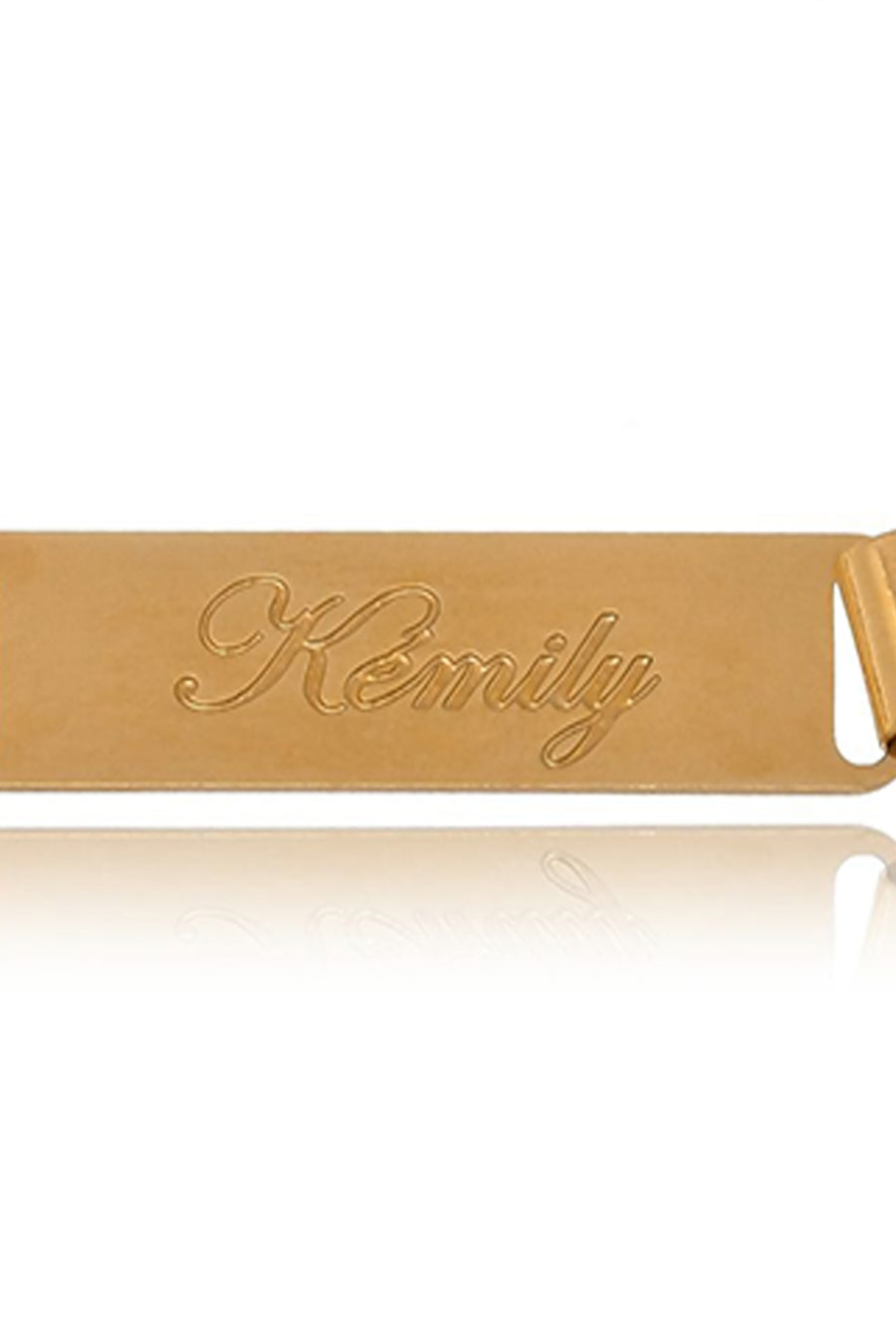 Um lindo modelo de pulseira personalizada com nome em uma chapa, com certeza um verdadeiro charme e encanto.