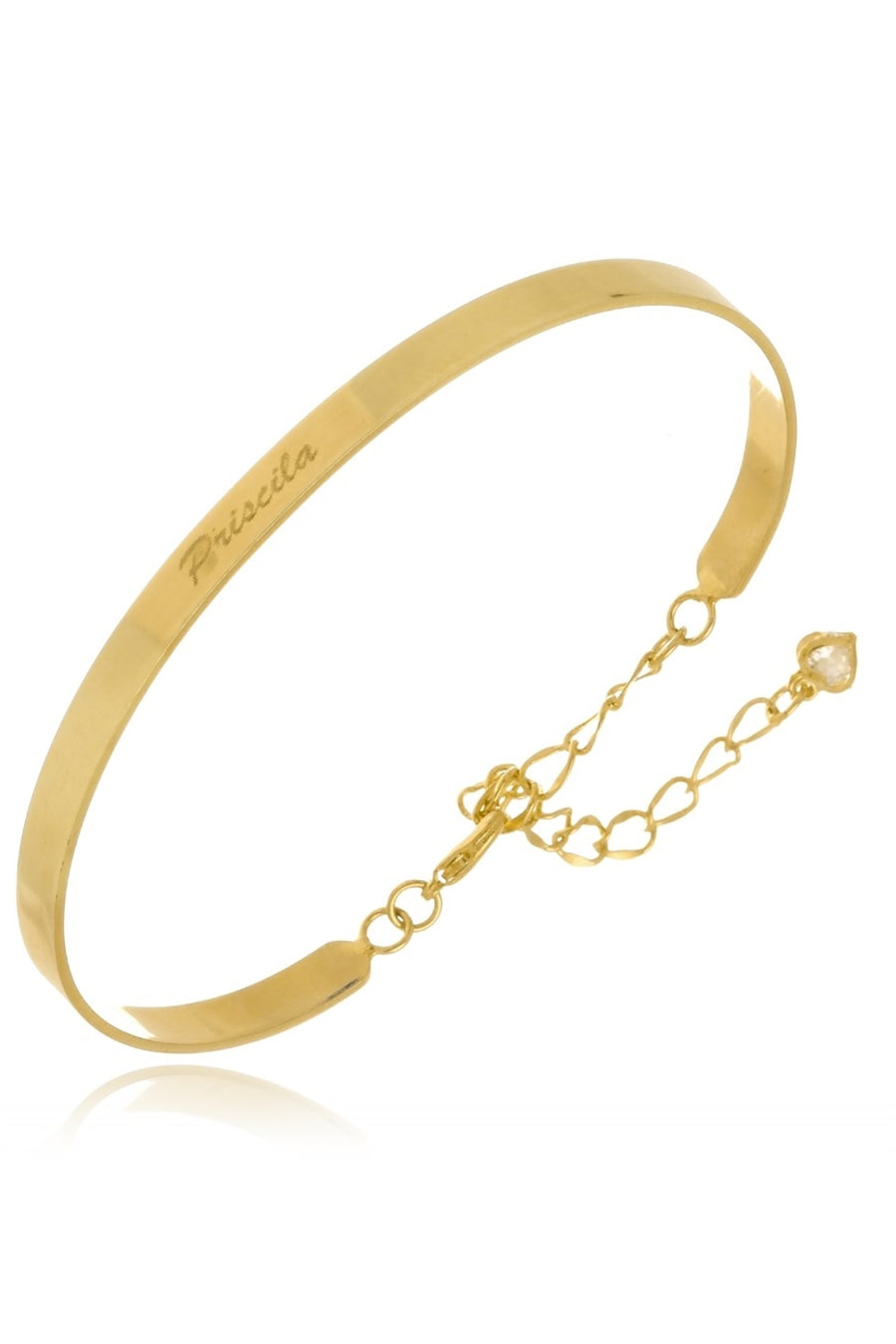 Pulseira Rígida com Nome e Feixe Folheado em Ouro 18K