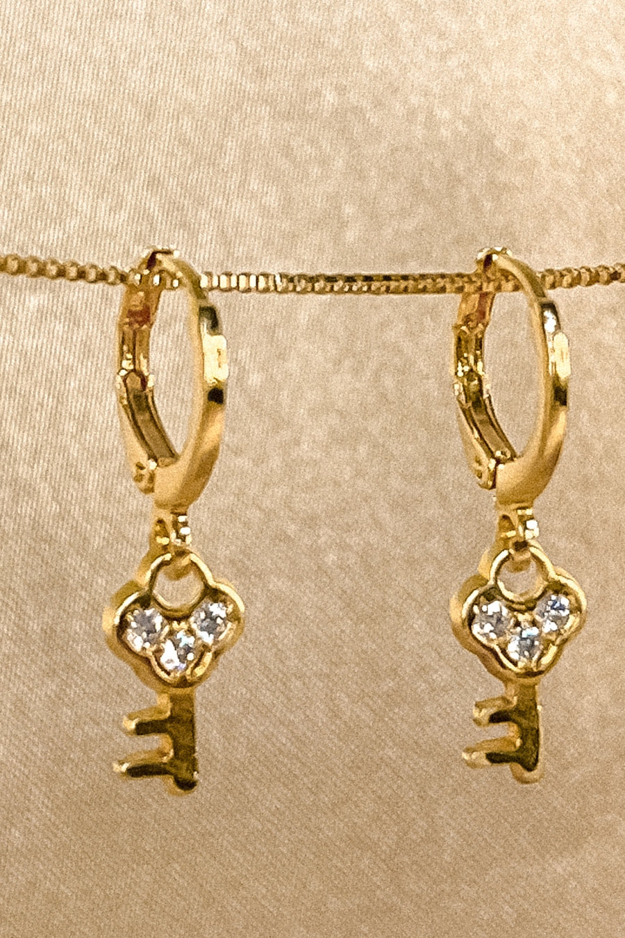 Brinco Argolinha com Chave Banhado em Ouro 18k