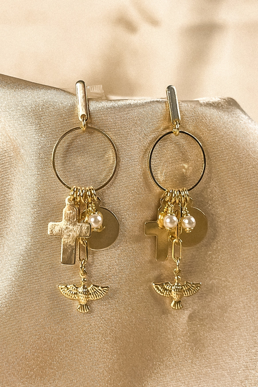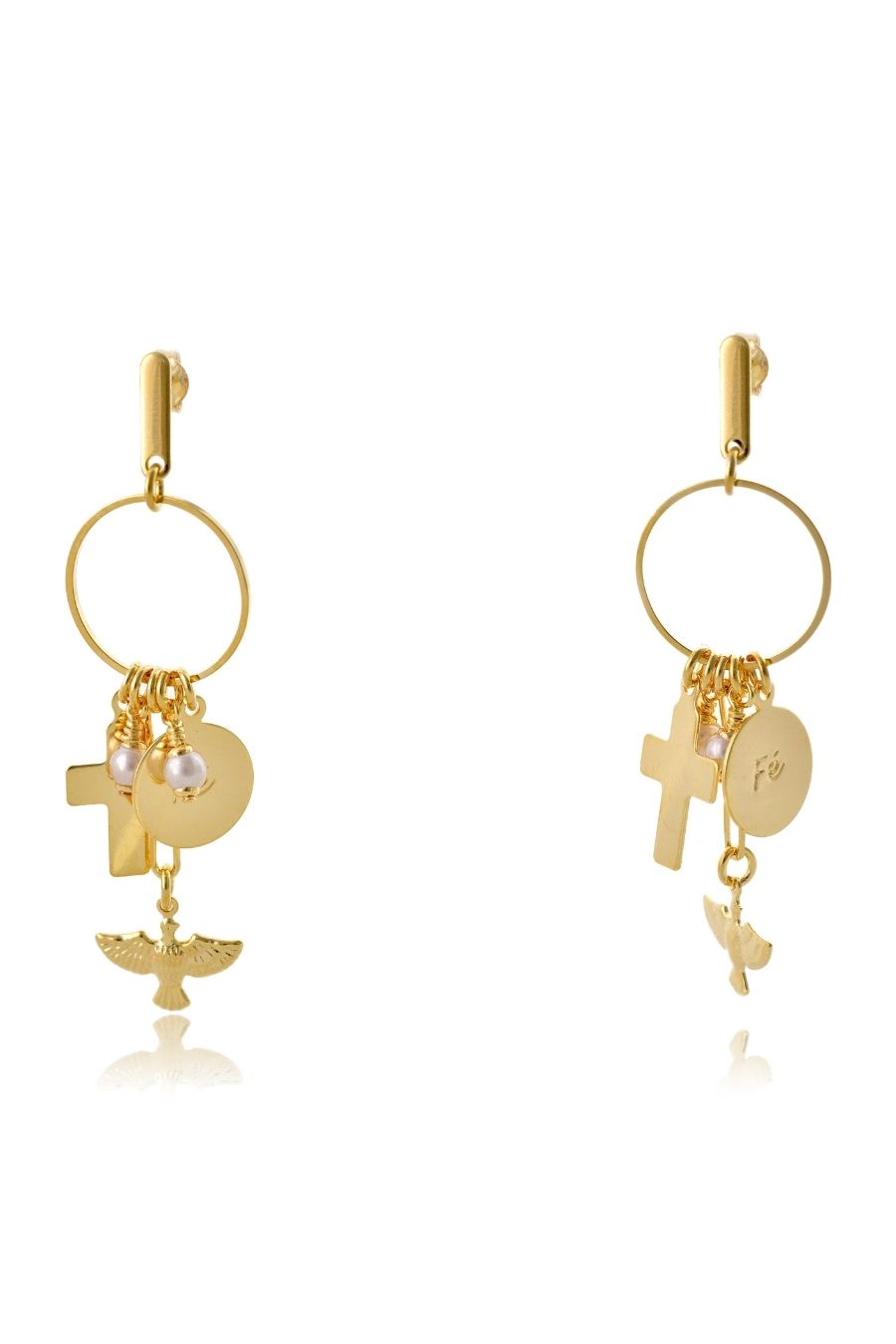 Este brinco apresenta encantadores pingentes religiosos, banhados em ouro 18k, oferecendo um visual espiritual e elegante. Os pingentes adicionam um toque de fé e devoção à peça, tornando-a ideal para quem busca uma joia única e cheia de significado. Perfeito para complementar looks sofisticados com um toque de espiritualidade e estilo.