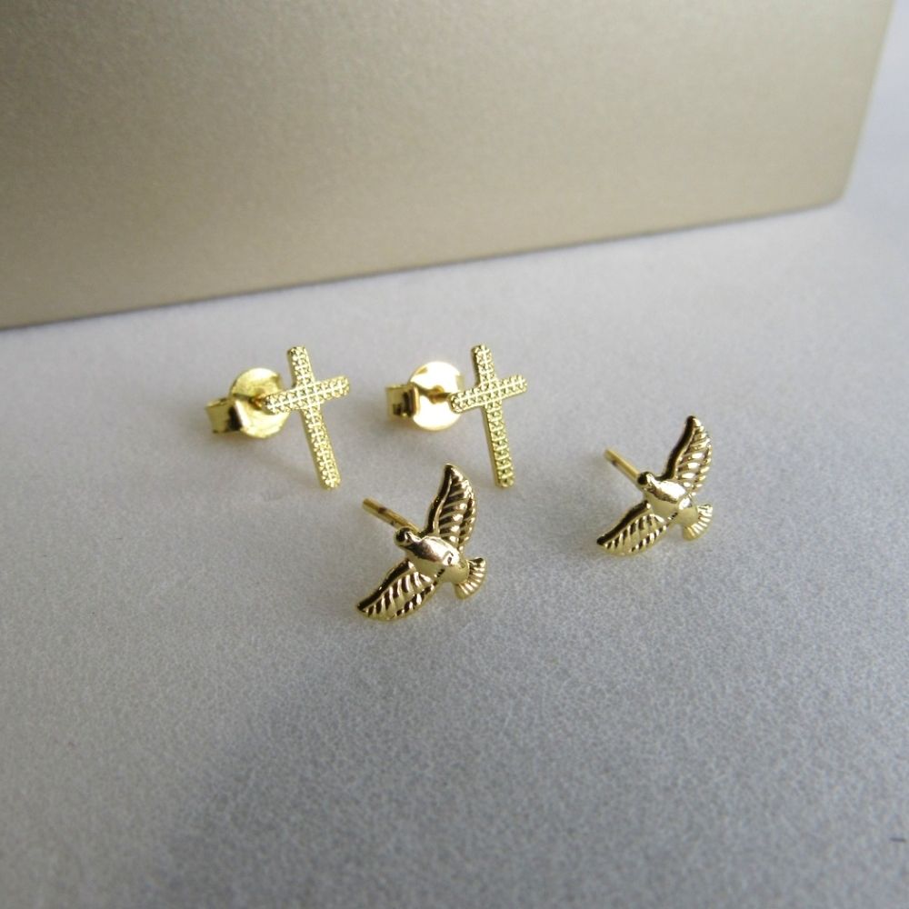 Os brincos Duo de Cruz e Espírito Santo Banhados em Ouro 18k são uma representação de fé e proteção. Este conjunto apresenta duas peças delicadas, cada uma adornada com um símbolo religioso, incluindo uma cruz e o Espírito Santo, ambos banhados em ouro 18k. Com seu design elegante e significativo, esses brincos são ideais para quem busca uma maneira elegante de expressar sua devoção e crença.