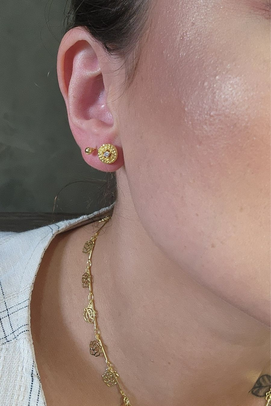 Brinco Círculo Pequeno Com Zircônia Central Banhado em Ouro 18k