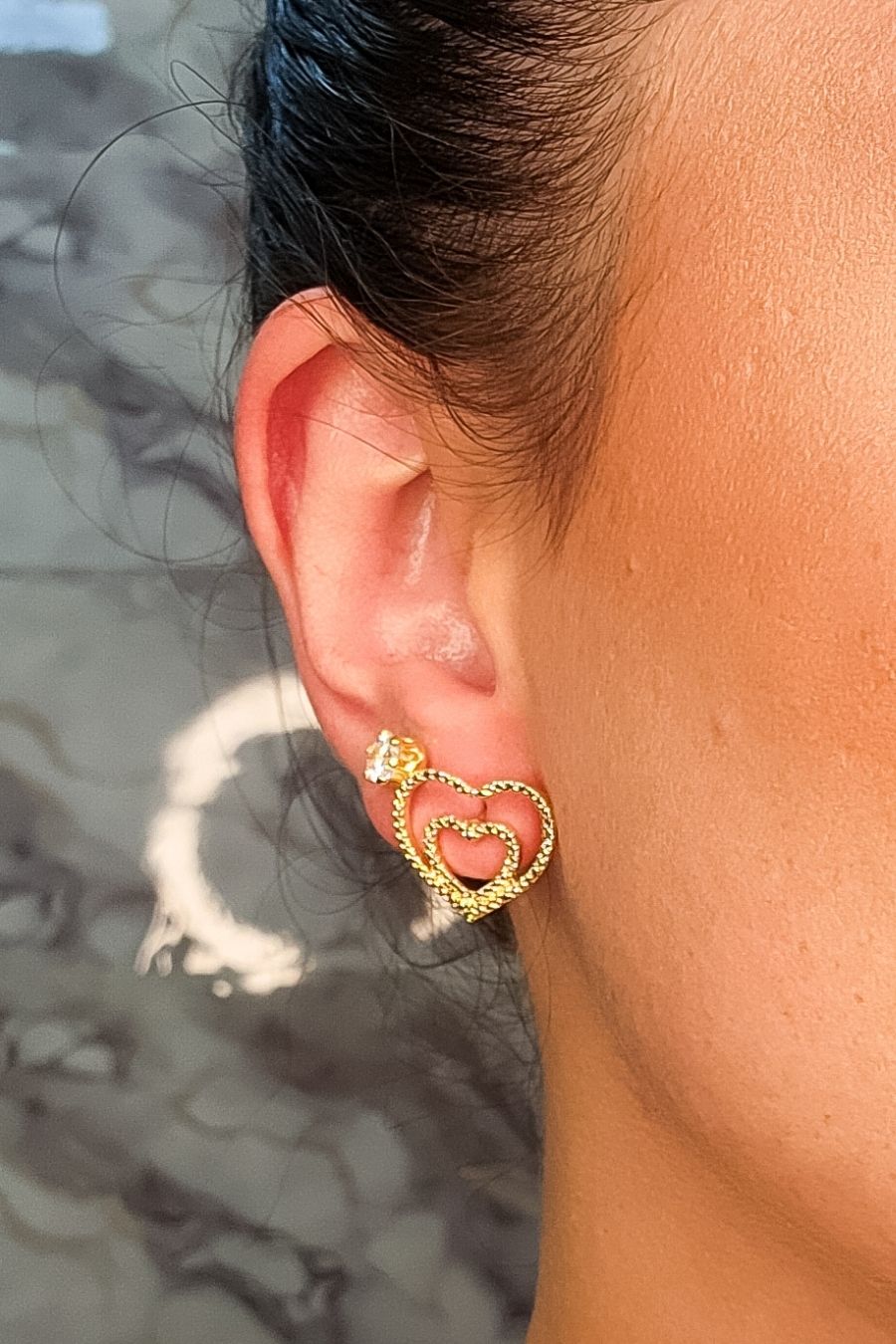 Este brinco delicado apresenta um pequeno coração dourado, banhado em ouro 18k, oferecendo um visual romântico e feminino. O design minimalista torna esta peça ideal para uso diário, adicionando um toque de amor e estilo ao seu visual. Perfeito para quem busca uma joia encantadora e discreta, este brinco é uma escolha romântica para complementar looks delicados com elegância.
