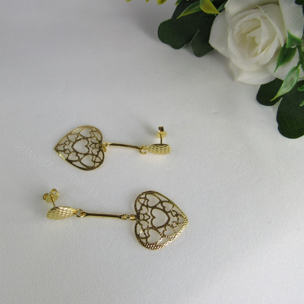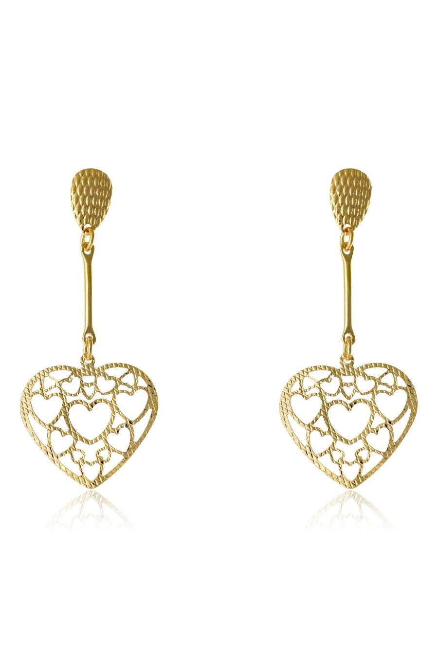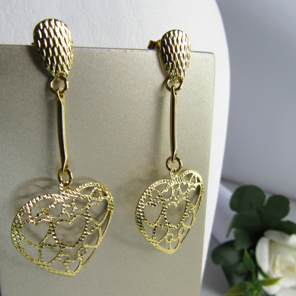 Este brinco médio apresenta encantadores corações vazados, banhados em ouro 18k, oferecendo um visual romântico e delicado. Os corações adicionam um toque de amor e estilo à peça, tornando-a ideal para uso diário ou ocasiões especiais. Perfeito para quem busca uma joia encantadora e cheia de significado, este brinco é uma escolha romântica para expressar seus sentimentos com elegância.