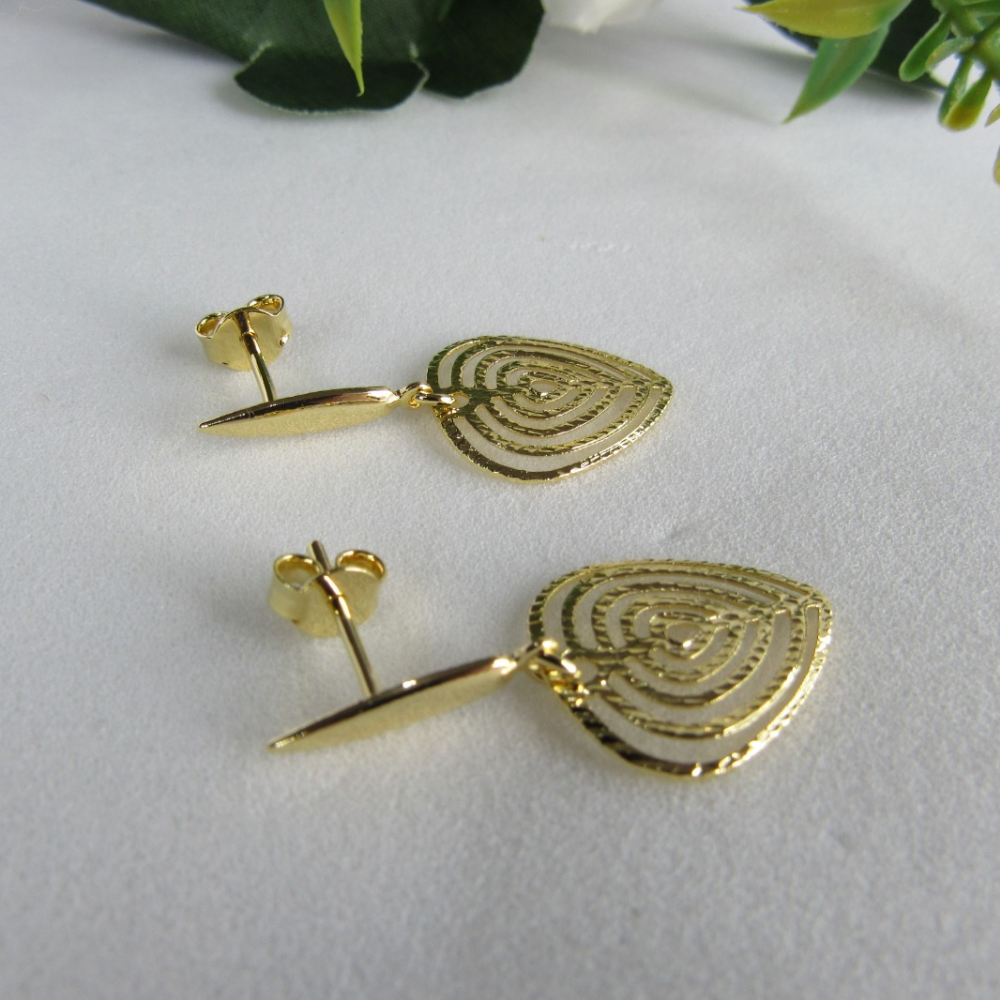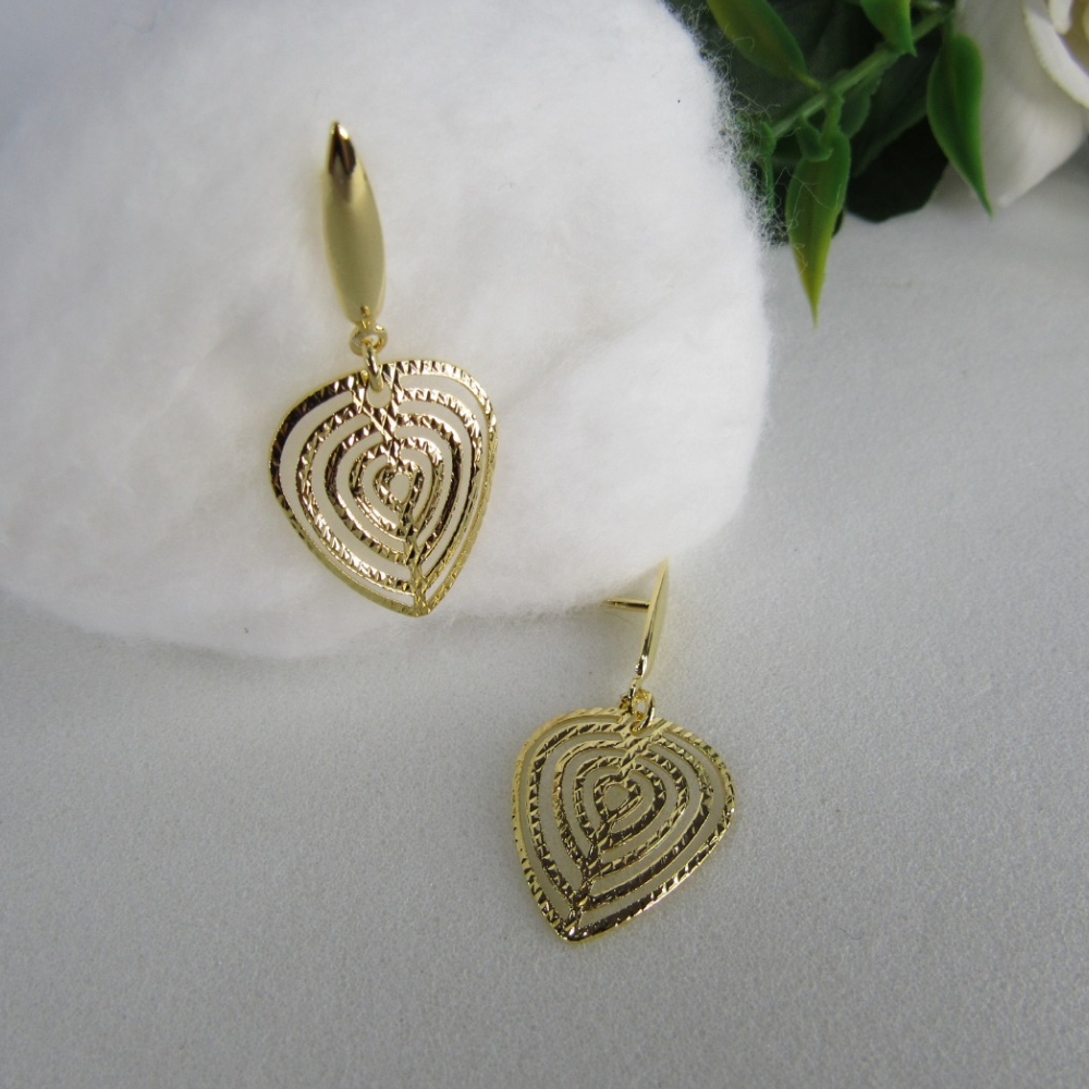 Este brinco médio apresenta um charmoso coração com vários vazados, adornado por um elegante fio, banhado em ouro 18k, oferecendo um visual romântico e contemporâneo. O detalhe dos vazados adiciona um toque de delicadeza, tornando esta peça ideal para ocasiões especiais. Perfeito para quem busca uma joia encantadora e cheia de estilo, este brinco é uma escolha romântica para complementar looks elegantes com sofisticação.