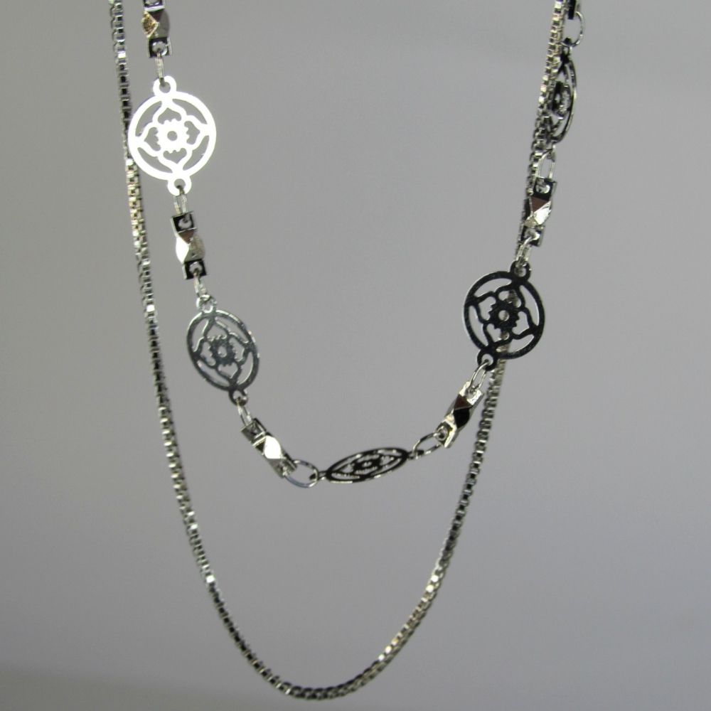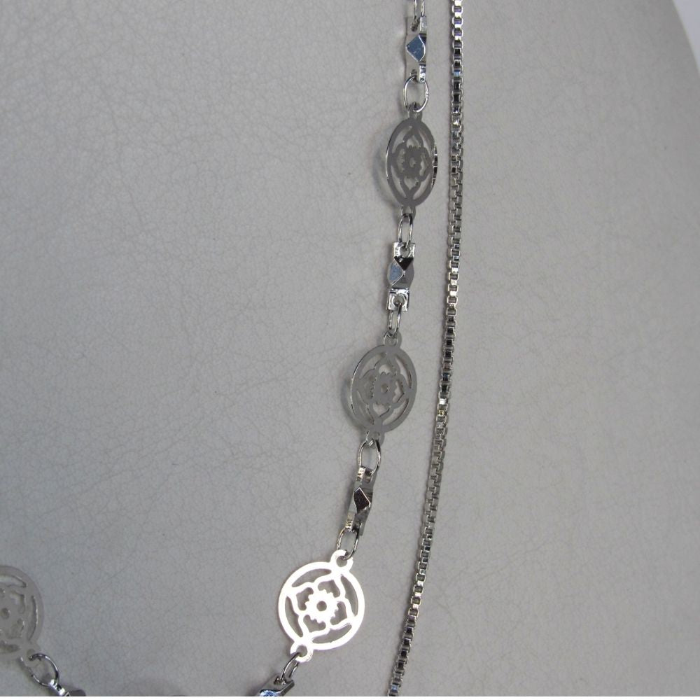 Colar com Corrente com Mini Flores Banhado em Ródio Branco
