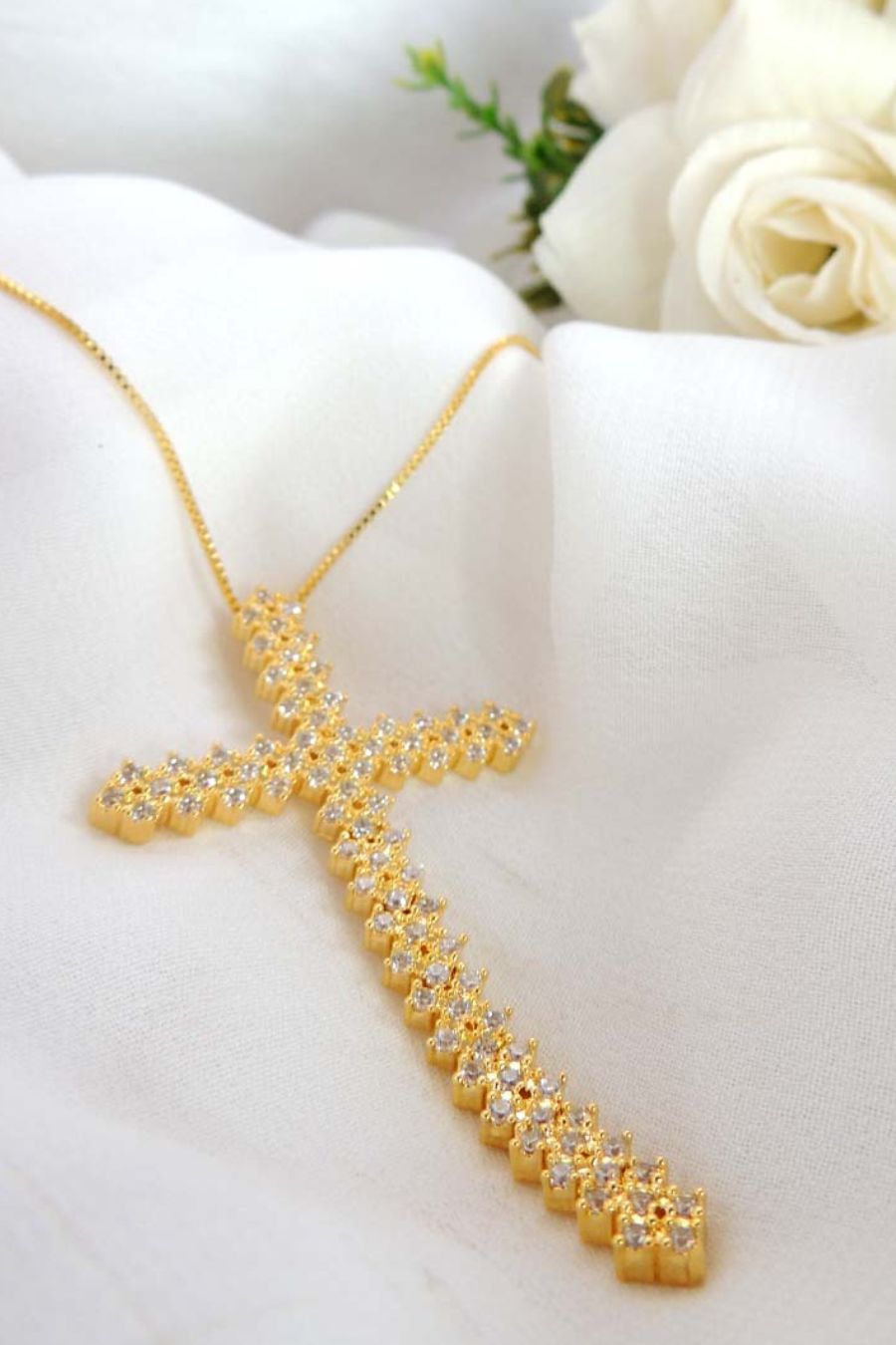 variant: Colar com Cruz Banhado em Ouro 18k Cor:Dourado