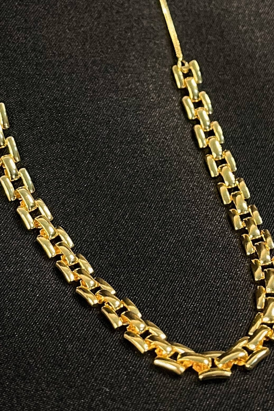 Este colar apresenta uma corrente de relógio, banhado em ouro 18k. O design vintage e elegante adiciona um toque de nostalgia e estilo ao seu visual, tornando esta peça perfeita para amantes de acessórios clássicos. Ideal para quem busca uma joia cheia de personalidade e charme.