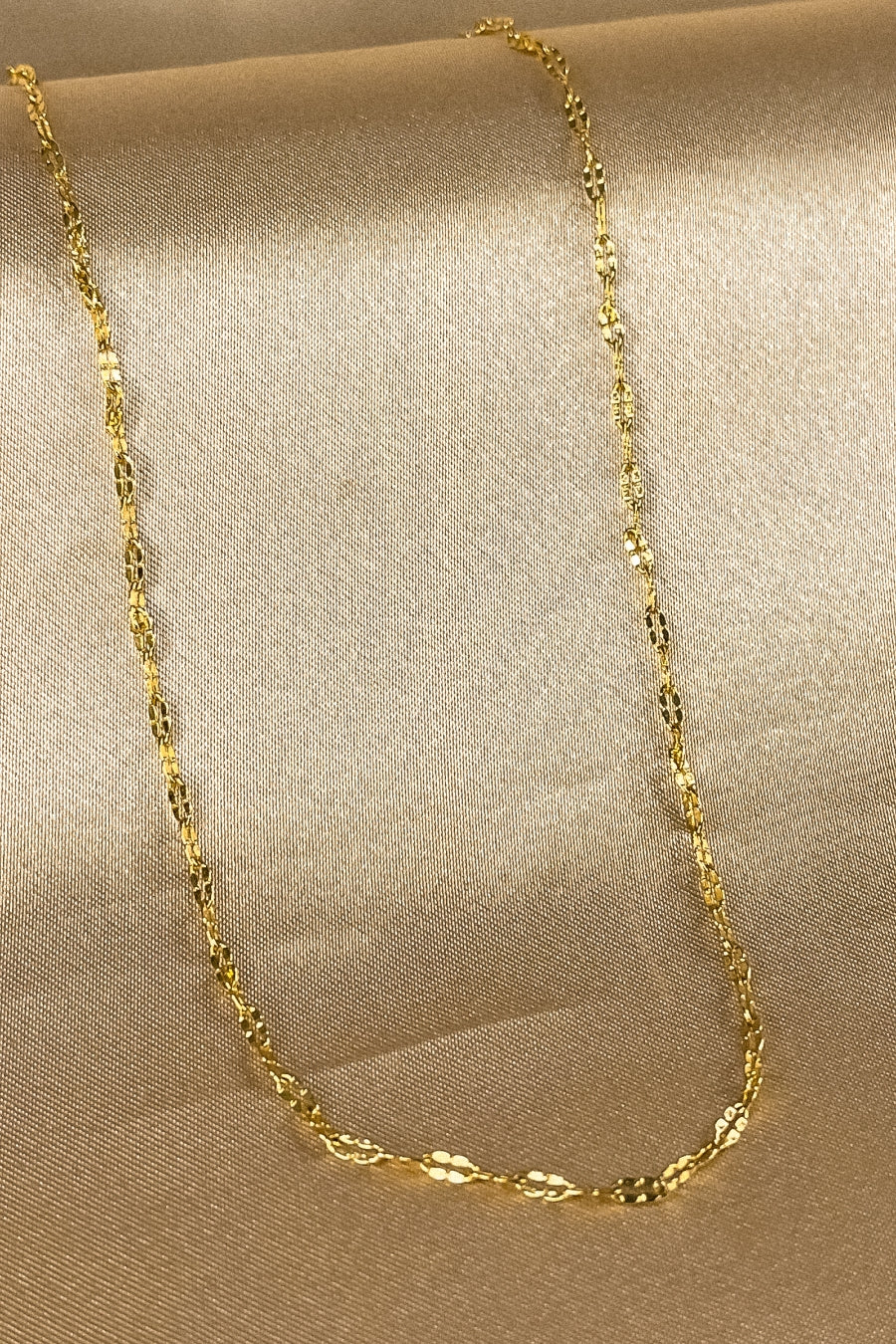 Este colar apresenta uma corrente longa composta por mini elos banhados em ouro 18k, oferecendo um visual elegante e moderno. O design simples e sofisticado torna esta peça versátil, ideal para uso diário ou para camadas com outros colares. Perfeito para quem busca uma joia minimalista e estilosa, este colar é uma escolha encantadora para complementar qualquer look.