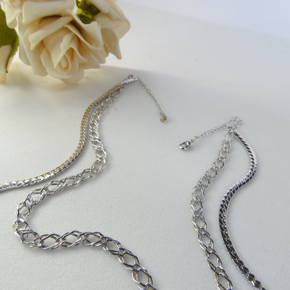 Colar Duplo com Correntes Grossas Banhado em Ródio Branco