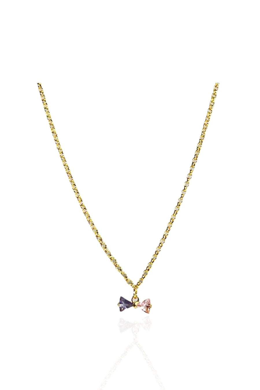 Este colar possui uma corrente de elo português com pingente de laço adornado com zircônias, banhado em ouro 18k. O design delicado e sofisticado adiciona um toque de brilho ao seu visual, tornando esta peça perfeita para ocasiões especiais ou para uso diário. Ideal para quem busca uma joia cheia de estilo e feminilidade.