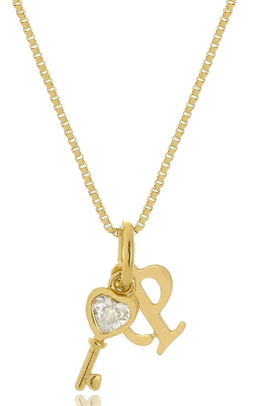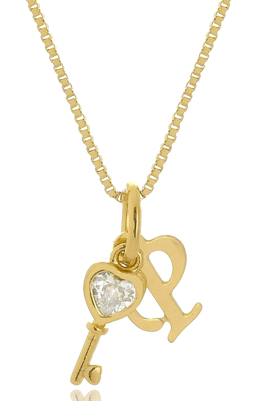 Um lindo modelo de colar personalizado de chave com detalhes em zircônia e inicial, um verdadeiro charme e encanto.