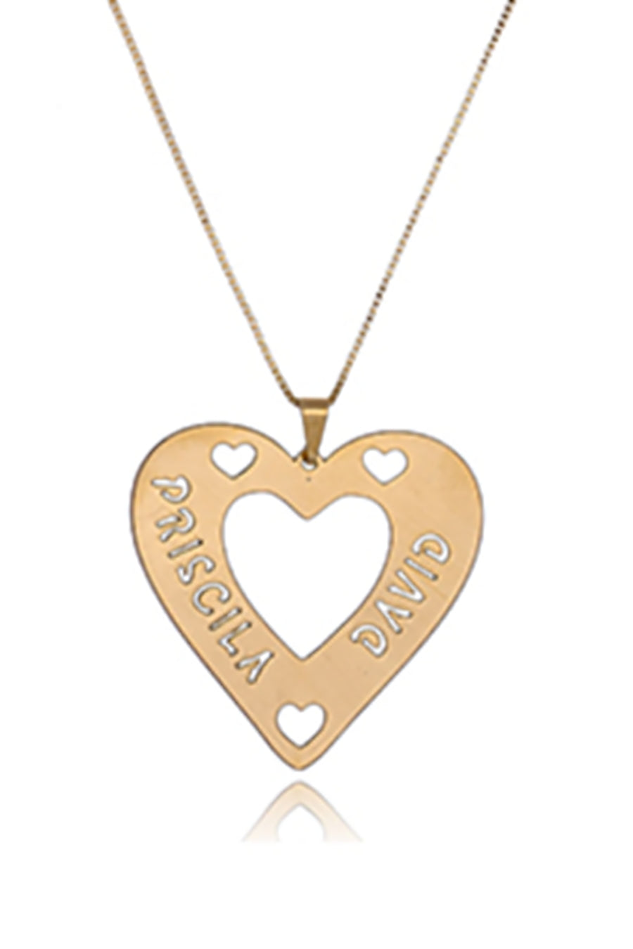 Um lindo modelo de colar personalizado de coração com nomes gravados e mini corações, com certeza um verdadeiro charme e encanto.