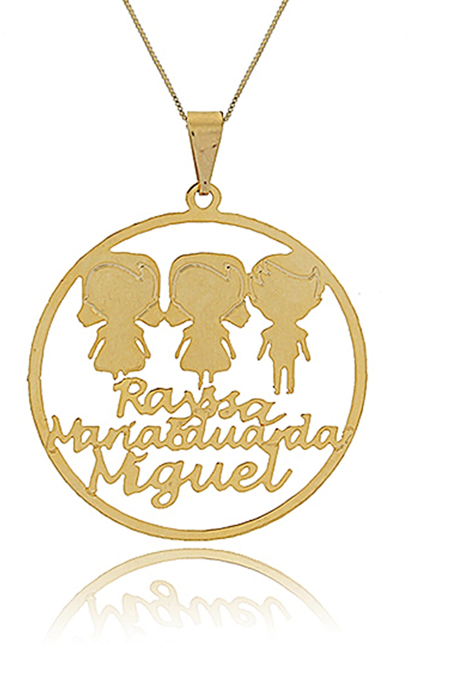 variant: Colar Personalizado de Filhos Com Nomes Vazados Nome:Três Crianças