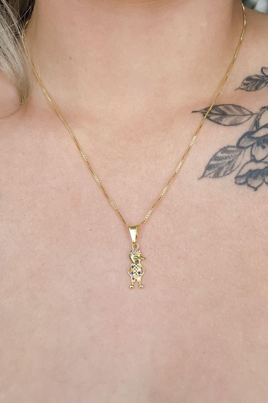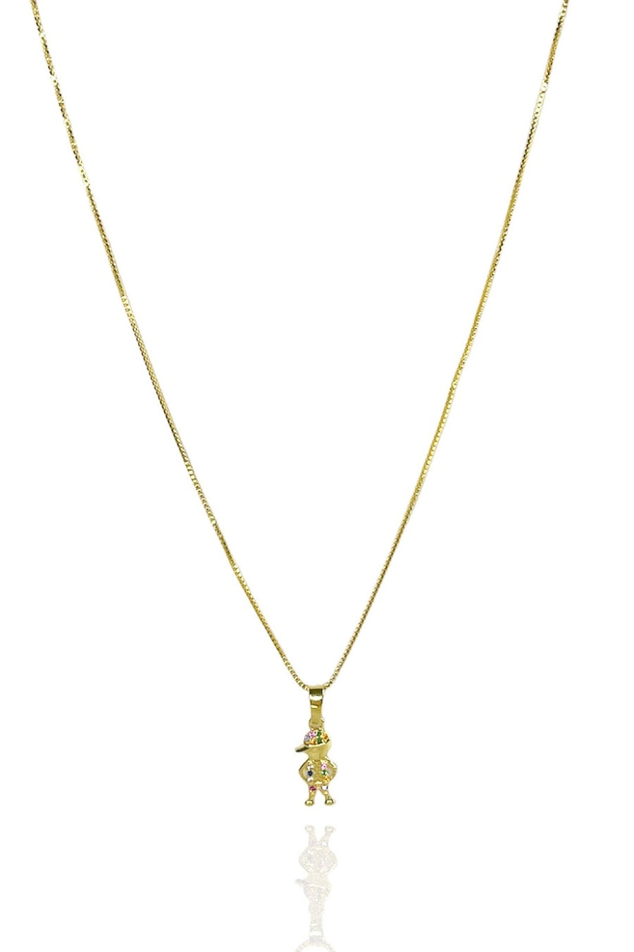 Colar Pingente Menino com Zircônia Colorida Banhado em Ouro 18k
