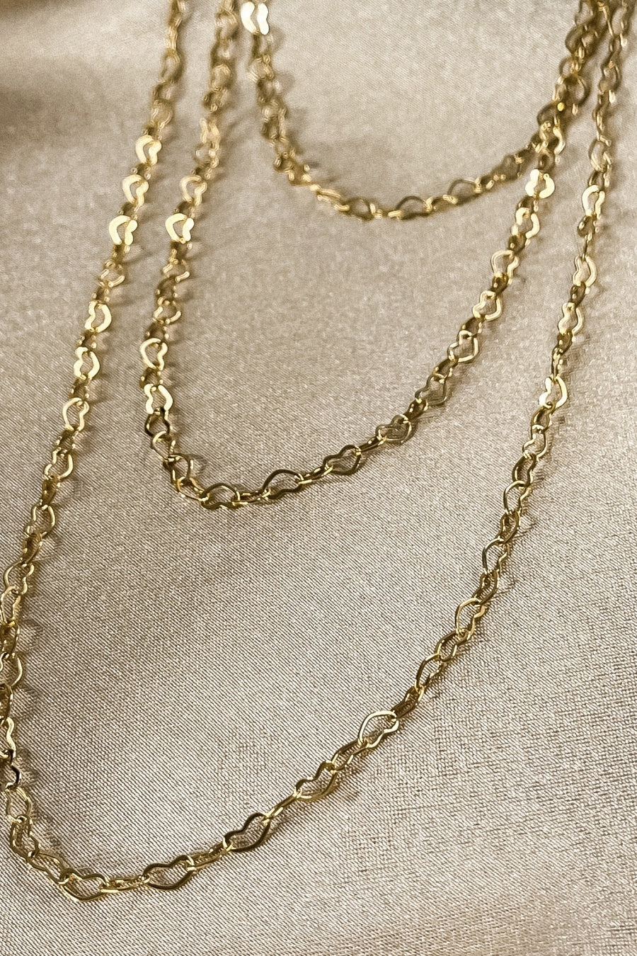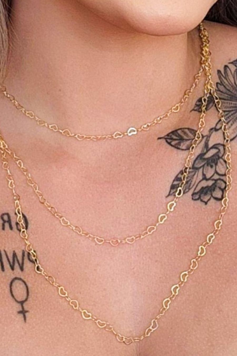 Este colar triplo apresenta três corações delicados, todos banhados em ouro 18k, oferecendo um visual romântico e sofisticado. O design em camadas adiciona dimensão e estilo ao seu visual, tornando esta peça perfeita para ocasiões especiais ou para uso diário. Perfeito para quem busca uma joia cheia de amor e elegância.
