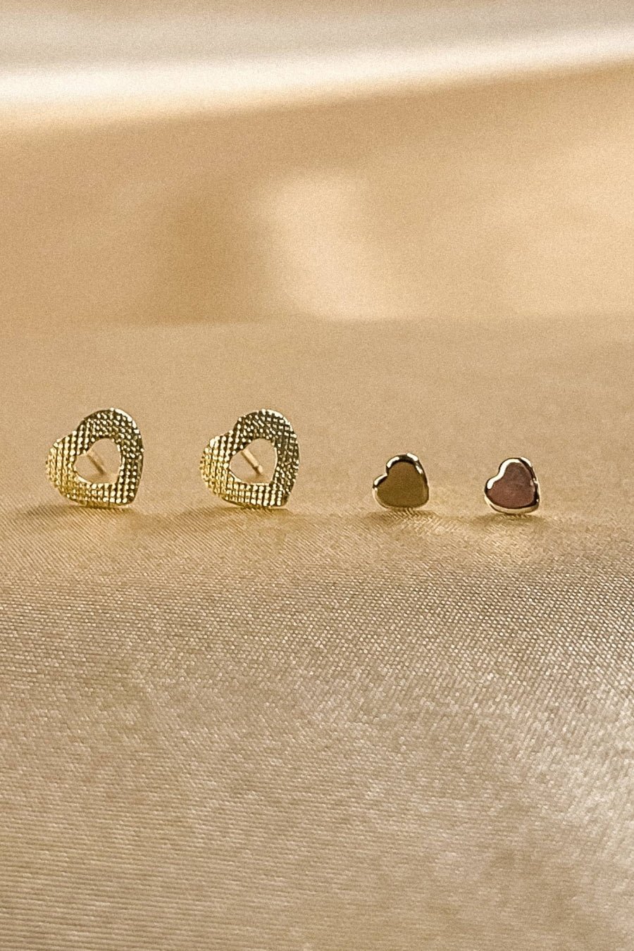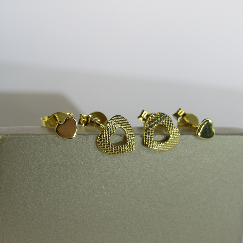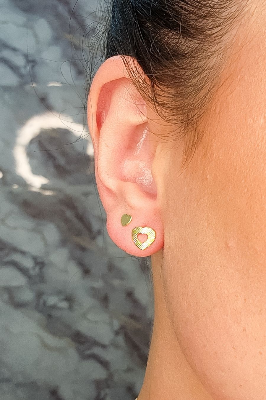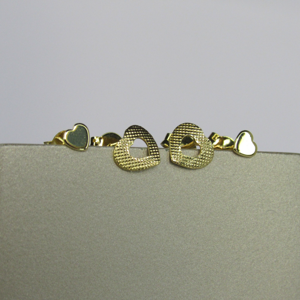 Os brincos Duo Coração Pequeno e Coração Vazado Trabalhado Banhados em Ouro 18k são uma expressão de amor e estilo refinado. Este conjunto apresenta dois brincos delicados, um com um pequeno coração e outro com um coração vazado trabalhado, ambos banhados em ouro 18k. Com seu design romântico e acabamento impecável, esses brincos são perfeitos para adicionar um toque de glamour e ternura ao seu visual.