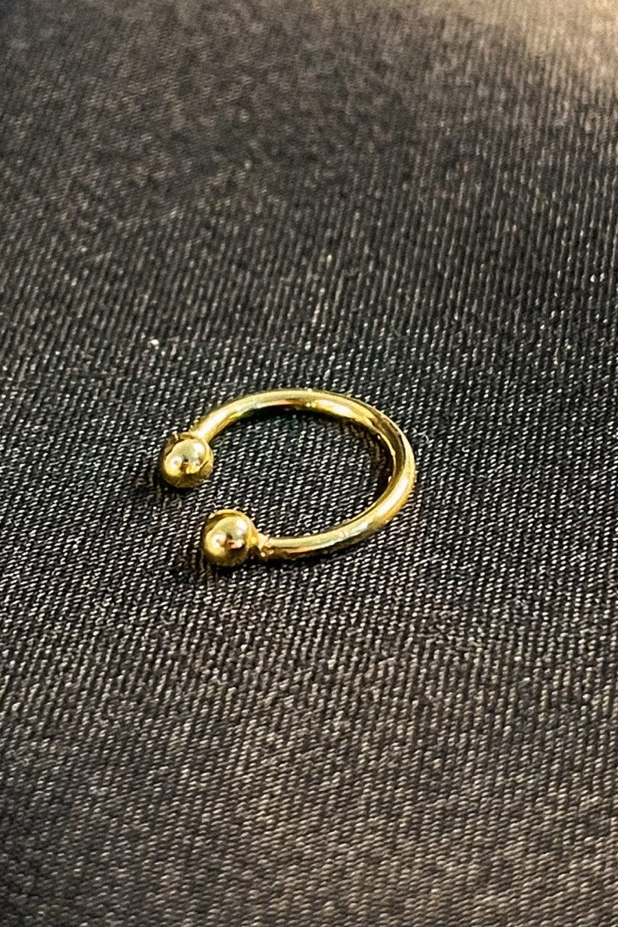 Este piercing fake banhado em ouro 18k oferece a aparência sofisticada de um piercing real, sem a necessidade de perfuração. Com um design elegante e simples, é perfeito para adicionar um toque de luxo e estilo ao seu visual diário ou em ocasiões especiais. O acabamento em ouro 18k proporciona um brilho intenso e durabilidade, garantindo que este acessório permaneça bonito por muito tempo.