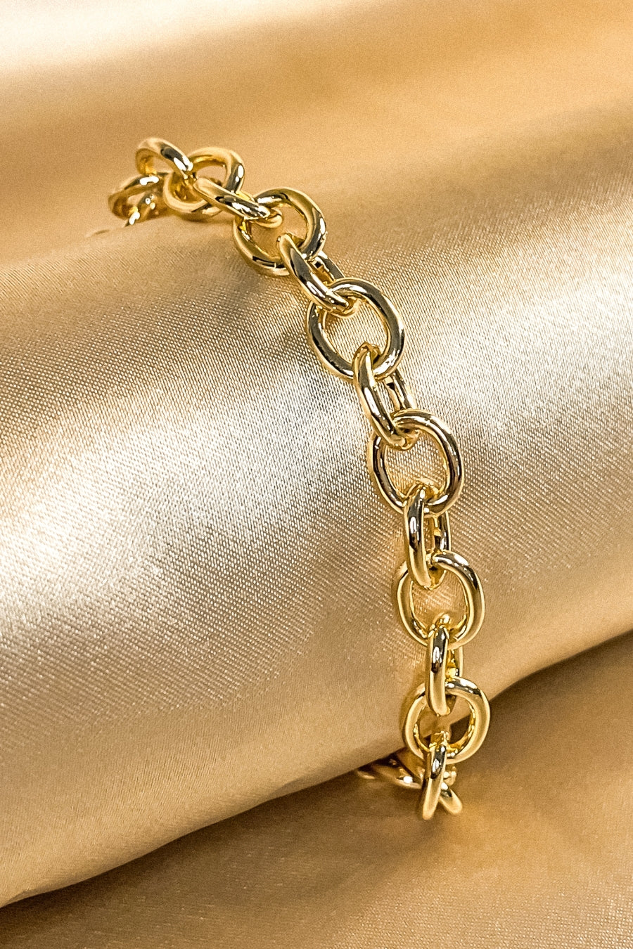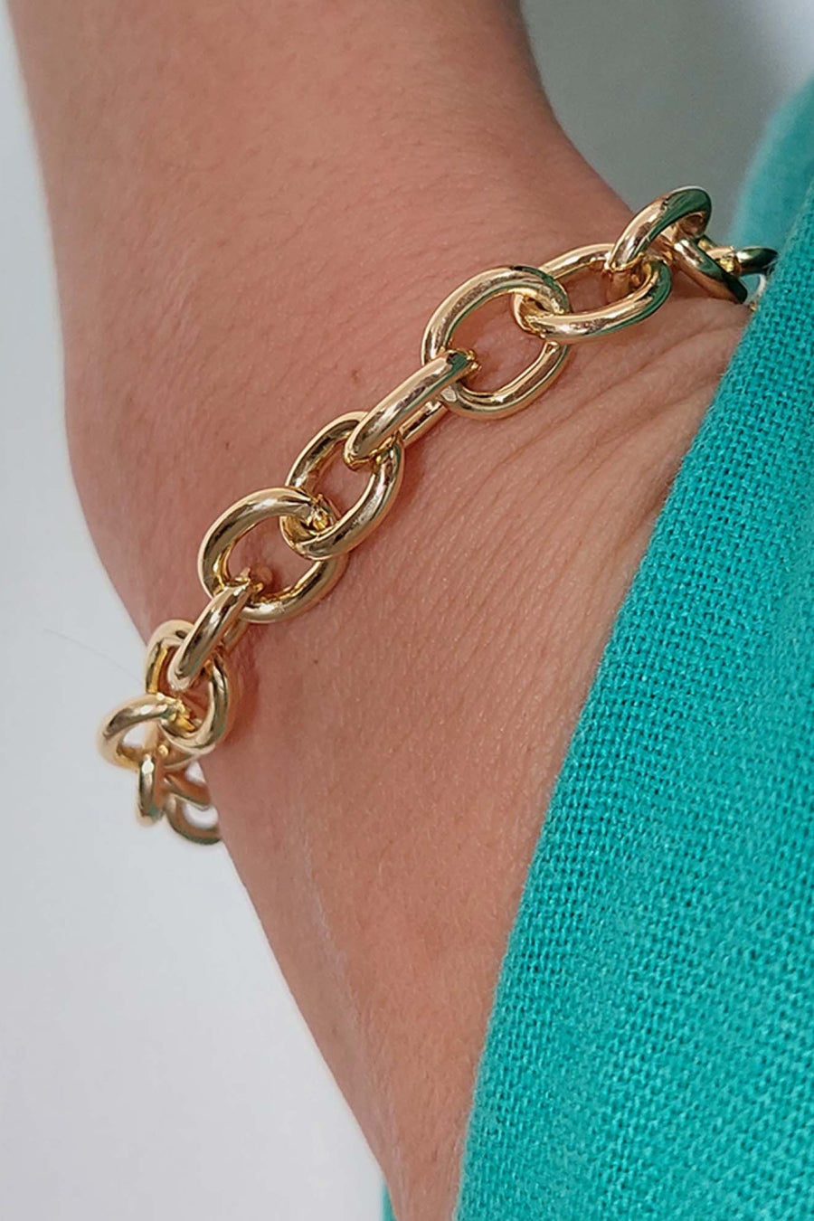 Esta pulseira apresenta elos ovais médios banhado em Ouro 18 quilates, oferecendo um toque de elegância e sofisticação ao seu visual. Sua versatilidade e beleza fazem dela uma escolha encantadora para complementar uma variedade de looks, do casual ao formal.