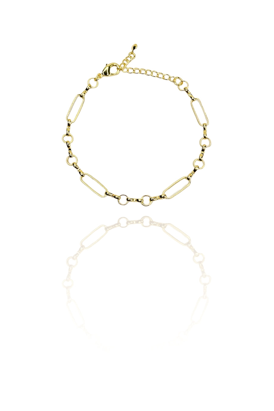 A Pulseira com Elo Ovalado e Elo em Círculo Banhada em Ouro 18k é uma semijoia elegante e versátil. Com um design clássico, combina elos ovais e circulares, todos banhados em ouro 18K para durabilidade e brilho duradouro. Esta pulseira é perfeita para adicionar um toque de sofisticação ao seu visual, seja para uso diário ou para ocasiões especiais, e pode ser facilmente combinada com outros acessórios para criar looks únicos e elegantes.
