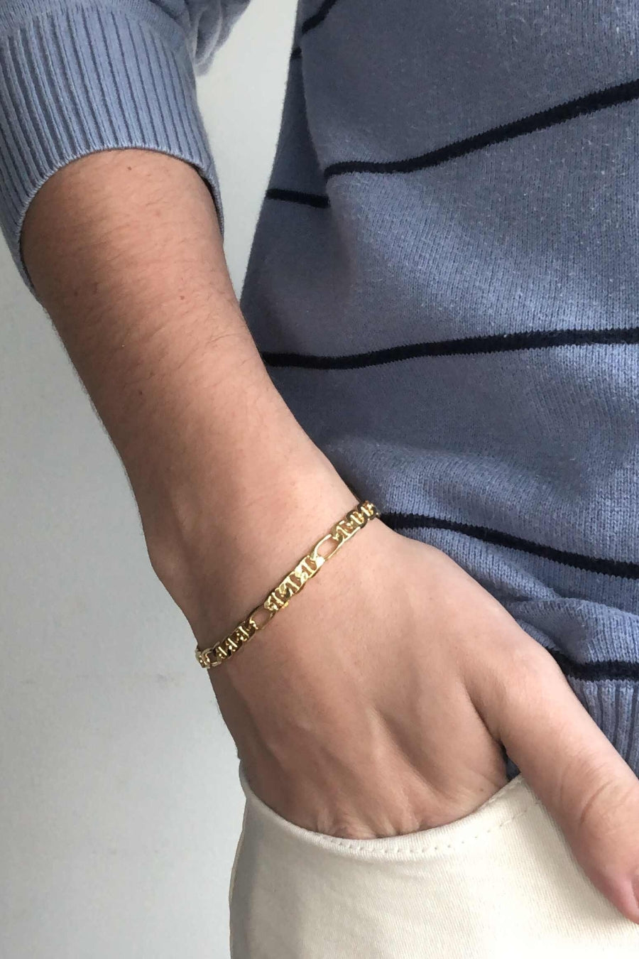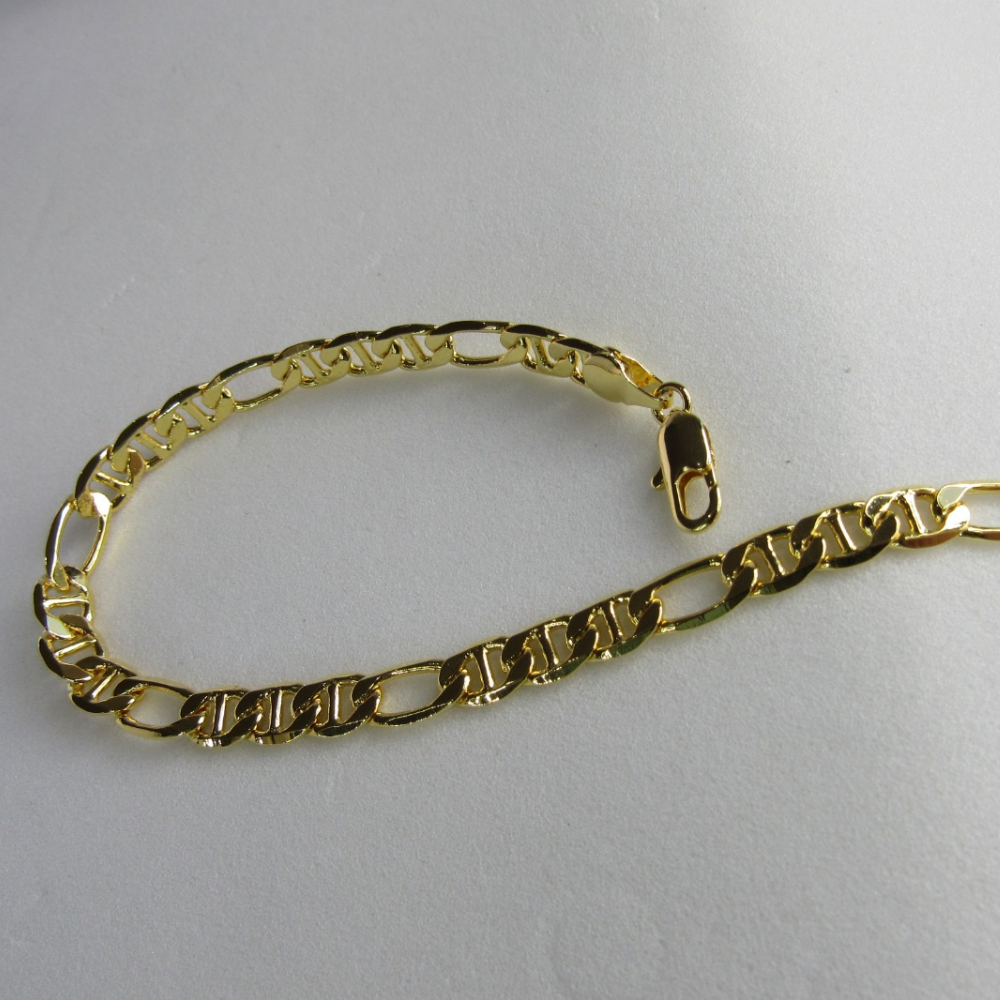 Esta pulseira apresenta uma corrente com elos sequenciados banhado em Ouro 18 quilates, oferecendo um toque de elegância e estilo ao seu visual. Sua beleza e versatilidade fazem dela uma escolha encantadora para complementar uma variedade de looks, do casual ao formal.
