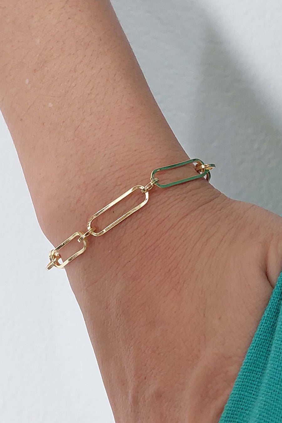 Esta pulseira apresenta elos intercalados com um círculo banhado em ouro 18 quilates, oferecendo um toque de elegância e estilo ao seu visual. Sua versatilidade e beleza fazem dela uma escolha encantadora para complementar uma variedade de looks, do casual ao formal.