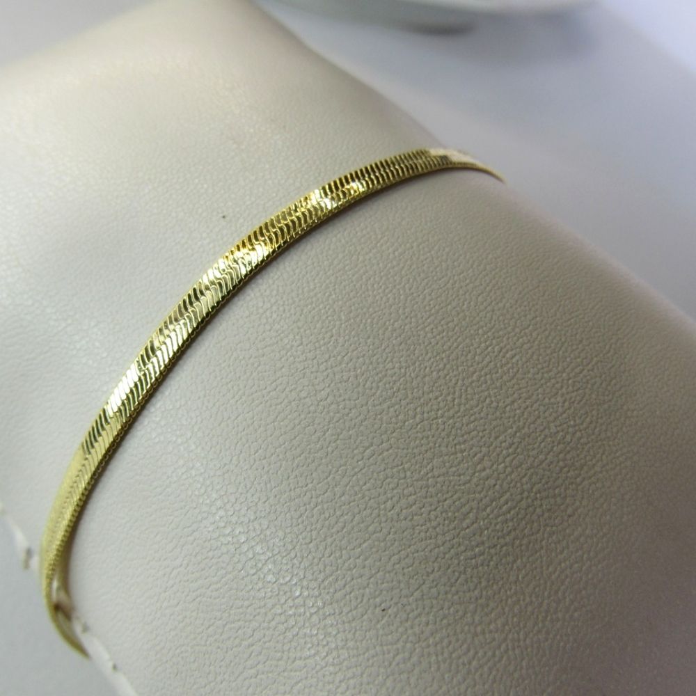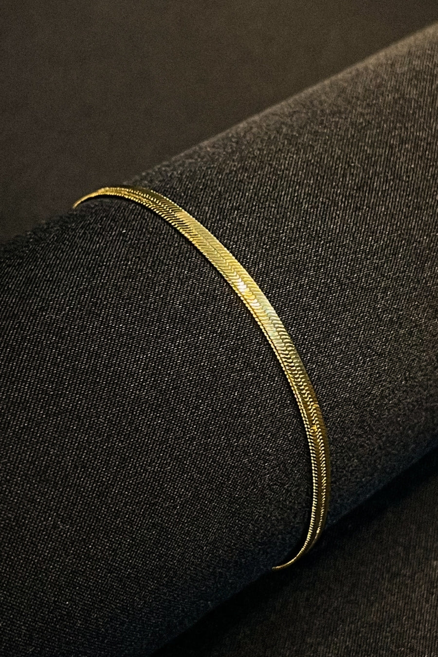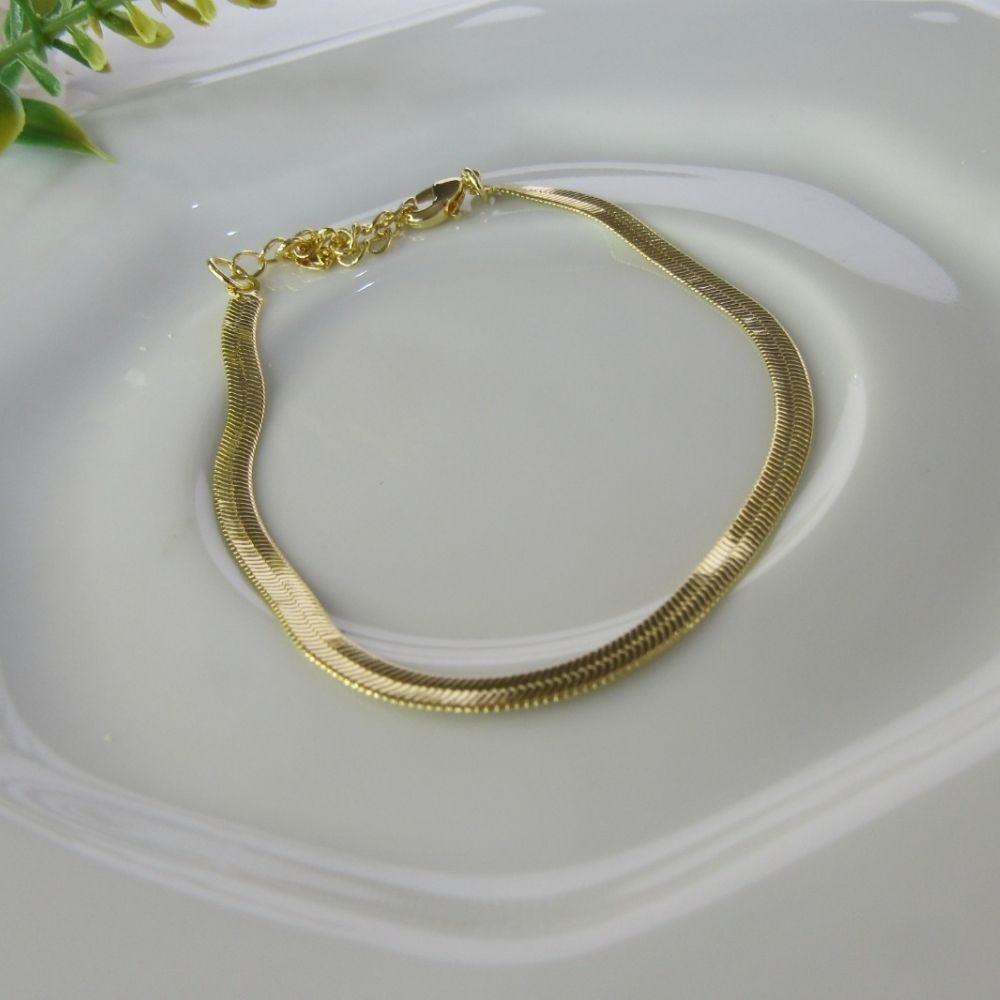 Esta pulseira apresenta uma fita banhado em Ouro 18 quilates, oferecendo um toque de delicadeza e elegância ao seu visual. Sua simplicidade e beleza fazem dela uma escolha versátil para complementar uma variedade de looks, do casual ao formal.