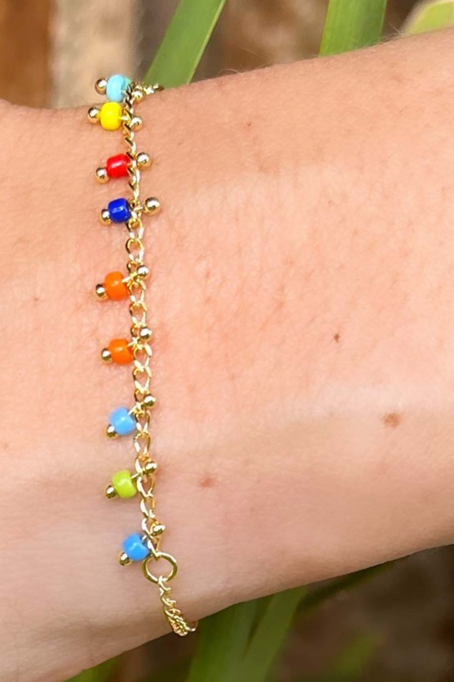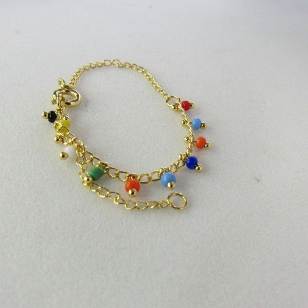 Esta pulseira encantadora foi projetada especialmente para as pequenas fashionistas, apresentando pedrinhas coloridas, banhado em Ouro 18 quilates. Perfeita para adicionar um toque de cor e diversão ao visual das crianças, esta pulseira é uma escolha encantadora para uso diário ou ocasiões especiais.