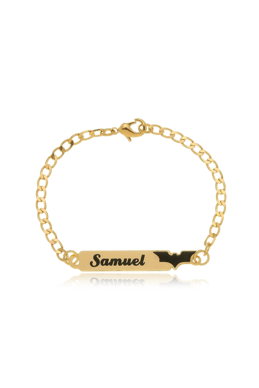 Pulseira Personalizada Chapada Com Nome e Desenho Folheado em Ouro 18k Personagem Batman