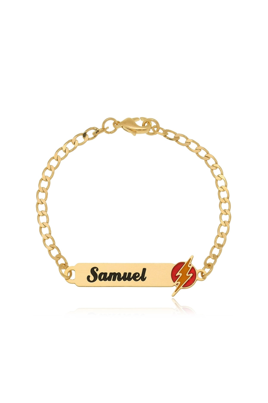 Pulseira Personalizada Chapada Com Nome e Desenho Folheado em Ouro 18k Personagem Garotinha