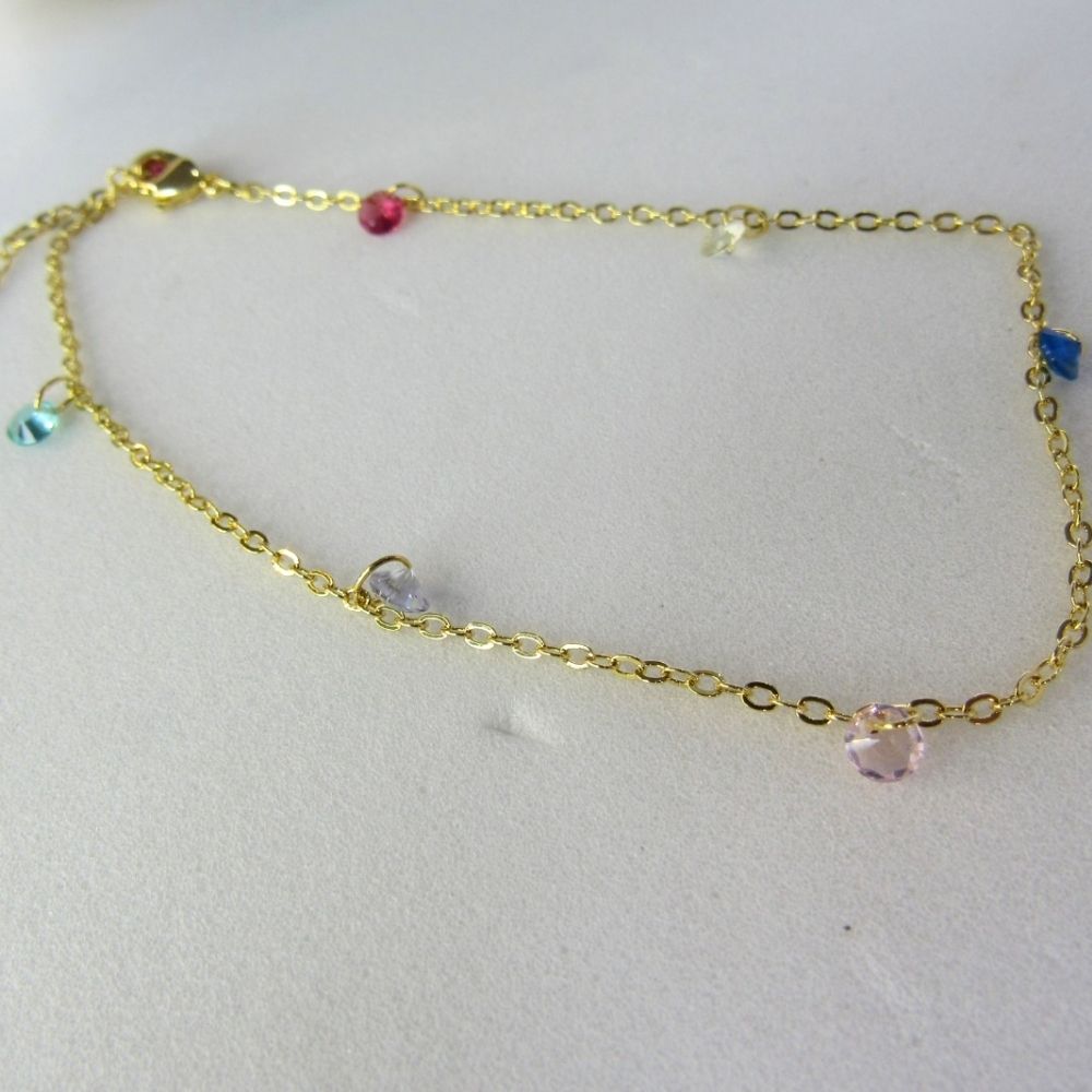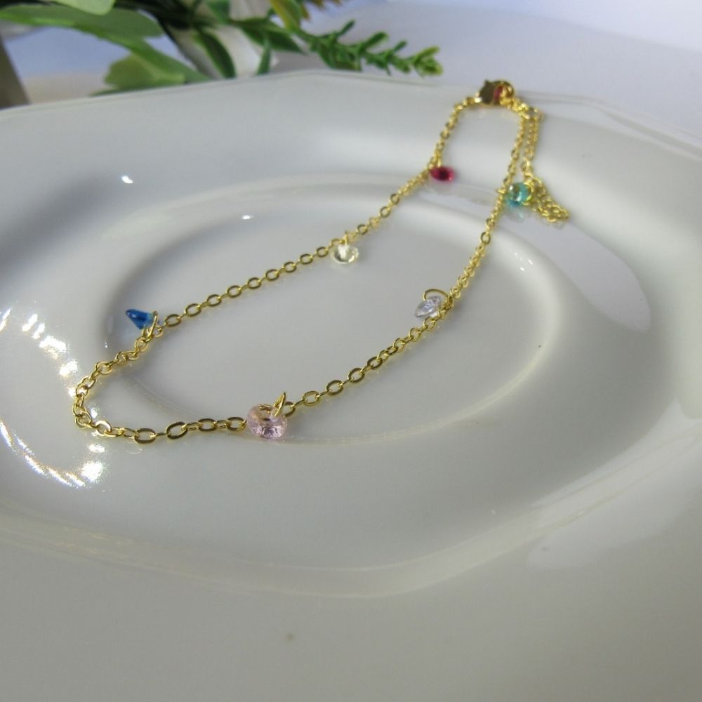 Tornozeleira Com Zircônia Coloridas Banhado em Ouro 18k