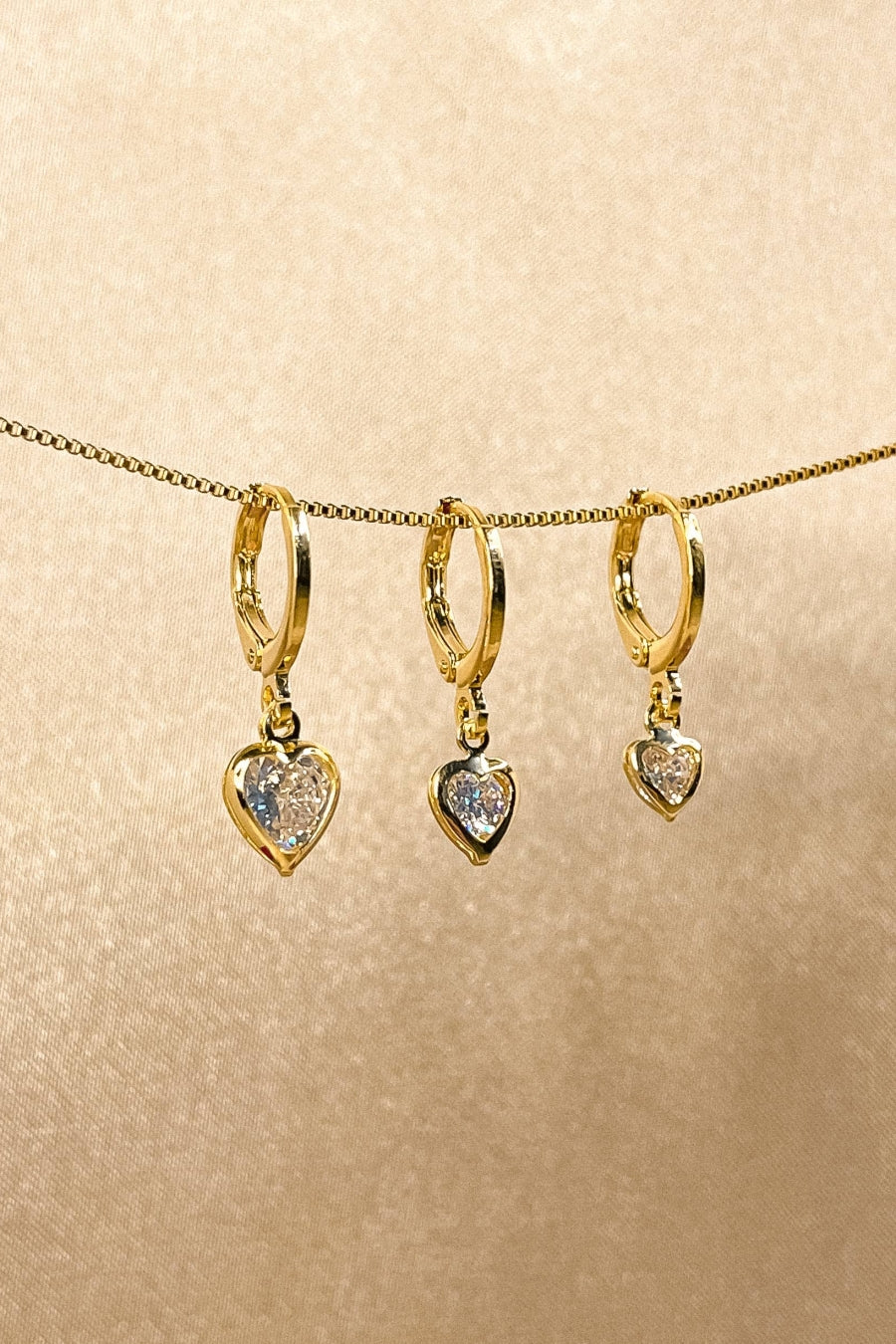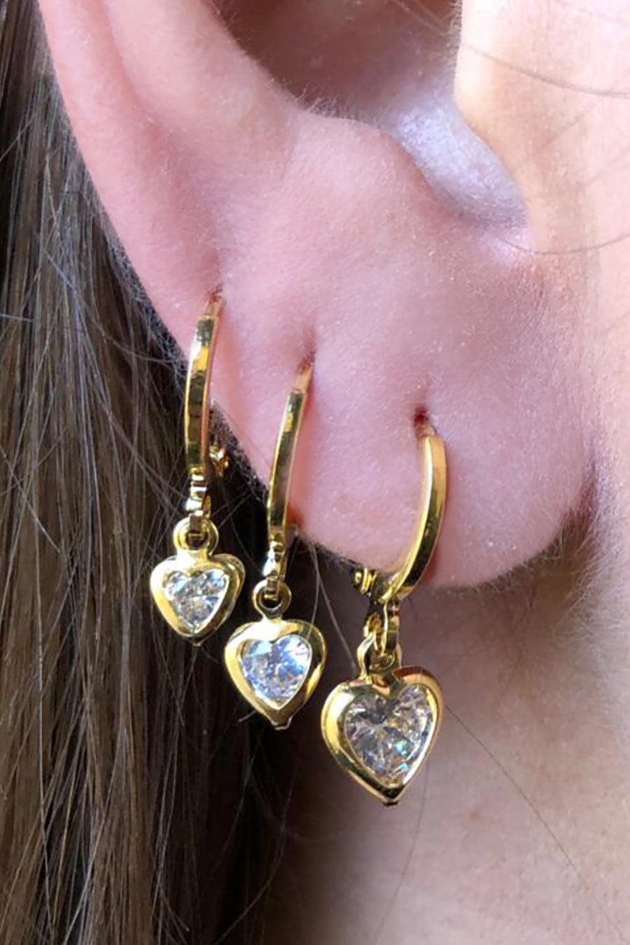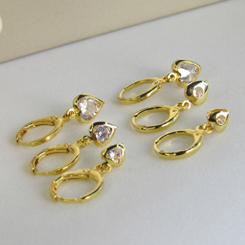 Este conjunto de argolinhas é uma expressão de romance e feminilidade. Cada par apresenta um delicado coração adornado com uma zircônia cintilante, adicionando um toque de brilho e charme. Os corações simbolizam o amor e a ternura, tornando esses brincos uma escolha encantadora para quem busca um estilo romântico e elegante. Banhados em ouro 18k, esses brincos são uma declaração de luxo e bom gosto.